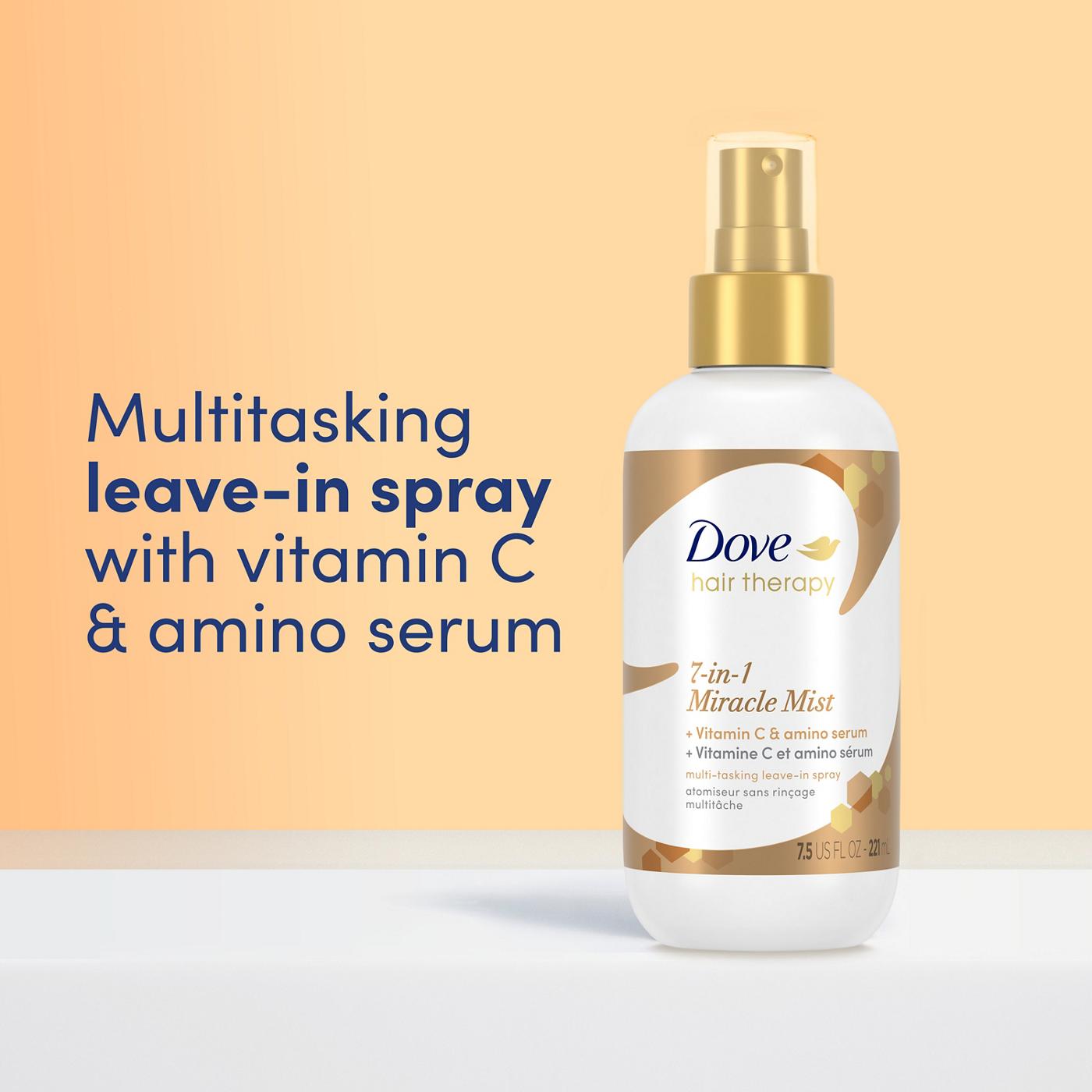 • Dove Hair Therapy 7-in-1 Miracle Mist hair care is a leave-in hairspray that visibly repairs, strengthens and nourishes hair without weighing it down