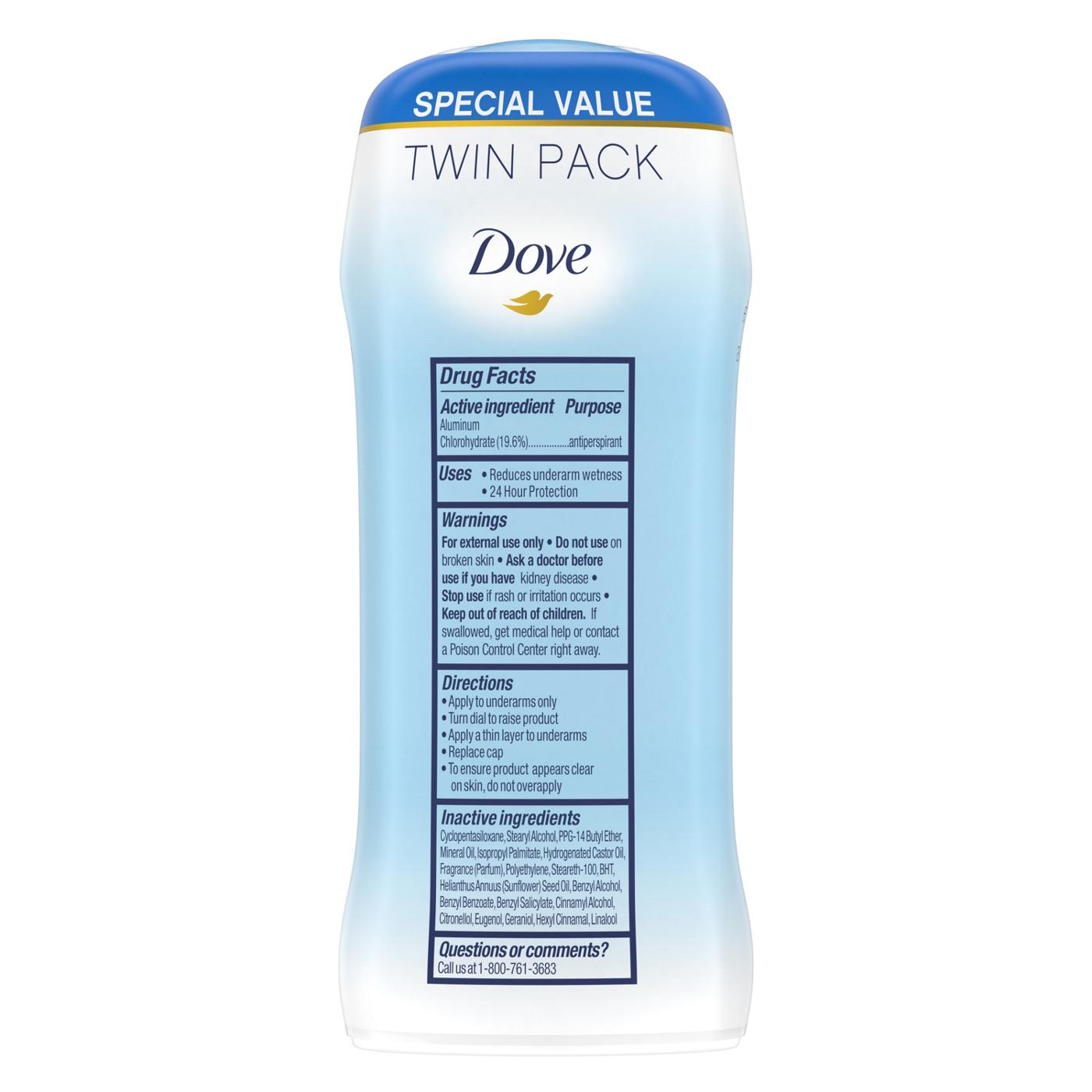 For soft, smooth underarms and invisible protection that lasts all day, look no further than Dove Invisible Solid Original Clean Antiperspirant Deodorant Stick. Formulated with ¼ moisturizers, this antiperspirant deodorant for women leaves your underarm skin feeling soft and smooth. The 0% alcohol (ethanol) formula helps your underarm skin recover from irritation caused by shaving, too. And it doesn't stop there. This deodorant stick gives you all day antiperspirant protection from underarm sweat and odor, has a clean, signature fragrance to keep you feeling fresh all day, and glides on for easy application. Plus, it's invisible and leaves no white marks behind, so you can stay fresh, comfortable and confident all day long. To get the most out of your antiperspirant deodorant stick, swipe it over cool, dry underarms two or three times until an even layer is applied. Its invisible solid format means you can get dressed and go, without worrying about deodorant stains. At Dove, our vision is of a world where beauty is a source of confidence, and not anxiety. So, we are on a mission to help the next generation of women develop a positive relationship with the way they look - helping them raise their self-esteem and realize their full potential.• Dove Invisible Solid Original Clean Antiperspirant Deodorant Stick provides all day underarm sweat & odor protection
