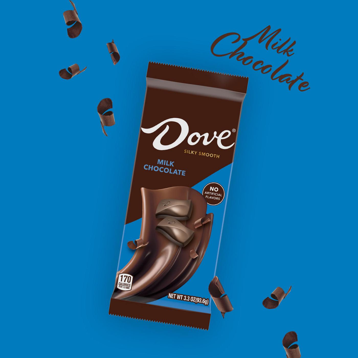 DOVE Milk Chocolate Bars will brighten your day. Each candy bar comes individually wrapped, but is segmented into pieces that you can break off and share with friends. Whether savored a piece at a time or enjoyed as a deliciously simple dessert, these extra-large chocolate bars are the perfect way to celebrate wins big and small. Available in six dynamically bold flavors--milk chocolate, milk chocolate almond brittle, dark chocolate, bourbon vanilla, raspberry rosé and salted caramel blonde--these oversized chocolate bars make delicious gifts for every chocolate-lover in your life. DOVE Chocolate: Choose MORE Pleasure.