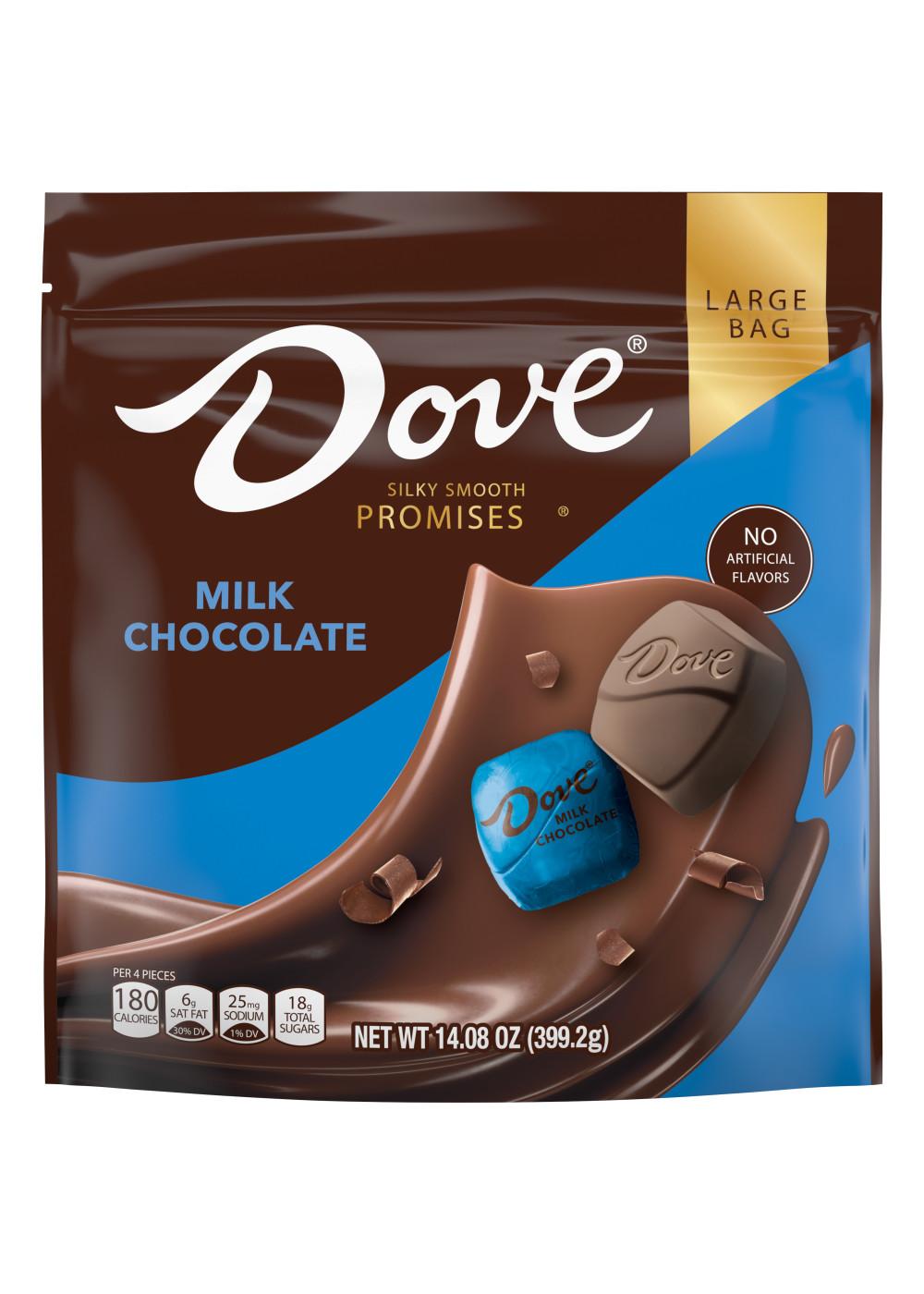 • Each resealable bag features about 56 individually wrapped DOVE PROMISES milk chocolates