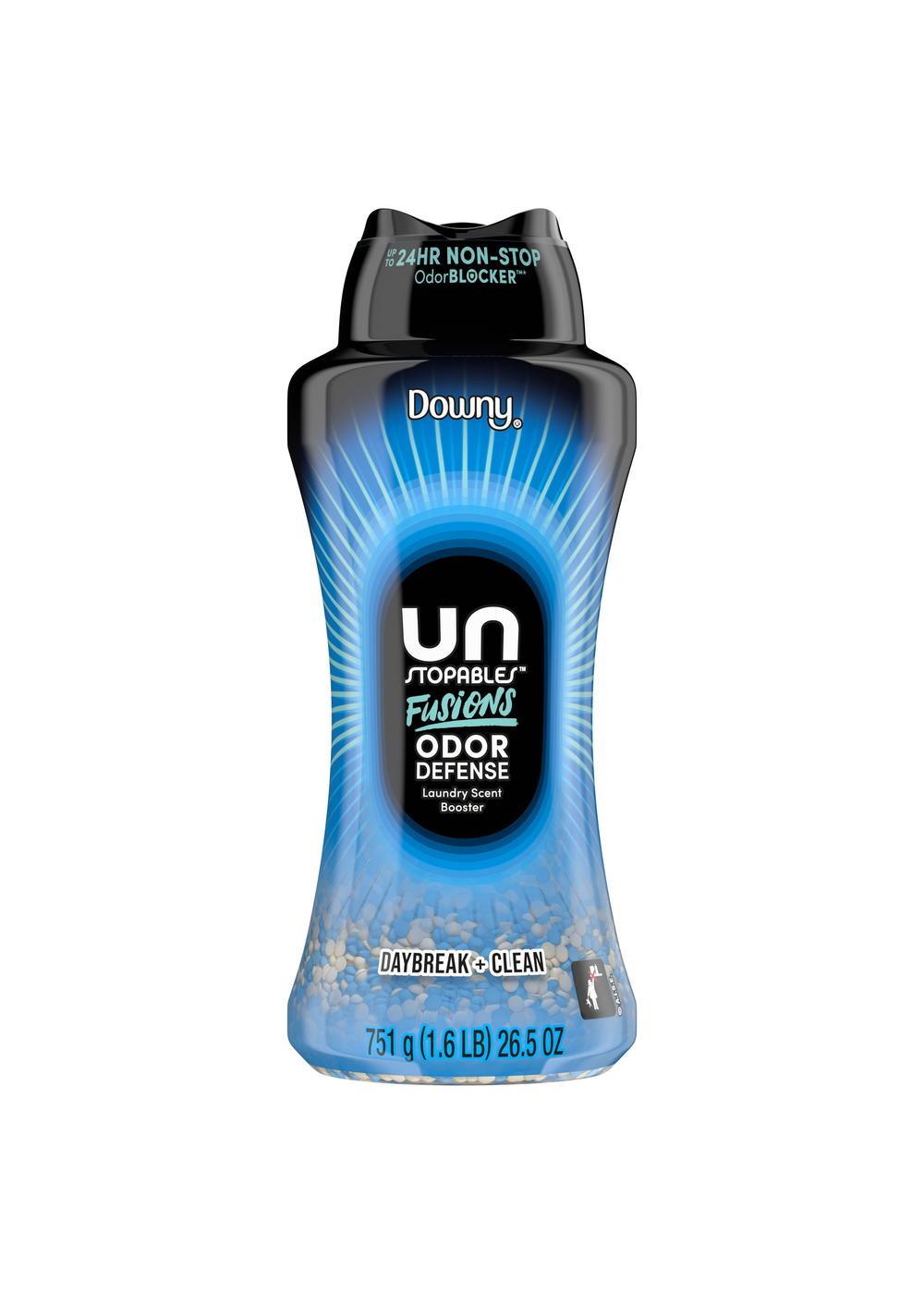 Take your laundry routine to another level with Downy Unstopables Fusions Odor Defense. These laundry beads use 2-in-1 dual-action technology for non-stop odor defense in-wear so you can stay on the move without worrying about unwanted everyday odor. Defend the day against stress, heat, and all the busy activities life throws at you. These Downy Scent Booster Beads also add the delightful scent of Daybreak + Clean. Let the crisp aroma of lily of the valley, water lily, and magnolia transform your clothes from regular to remarkable.Unstopables Laundry Beads are easy to use. Simply toss laundry beads into your washer before fabrics, add detergent, and run the cycle. They're safe on all machines and on all fabrics. Upgrade your clothes with this odor-blocker laundry scent booster and make your laundry routine unstoppable.
