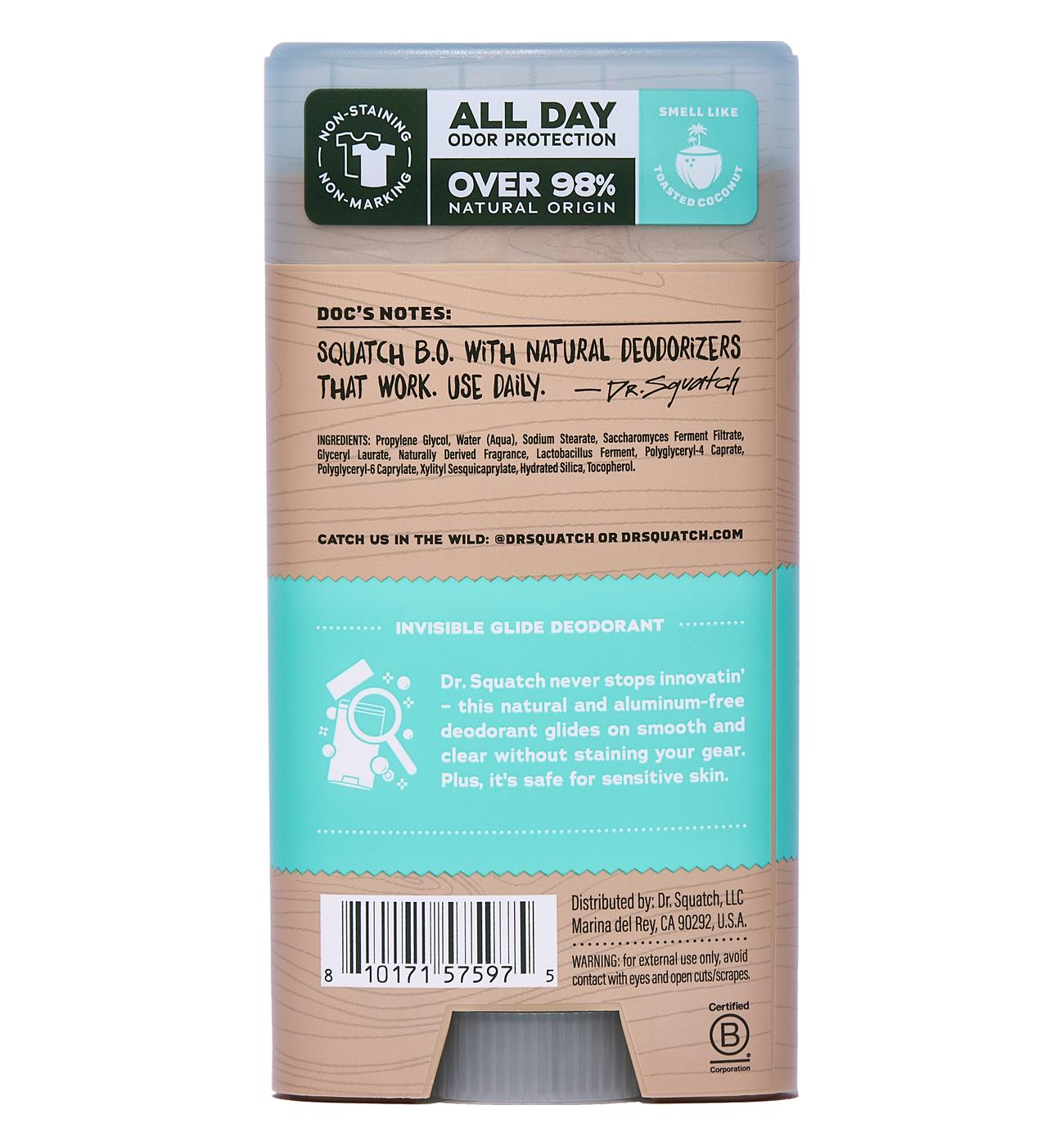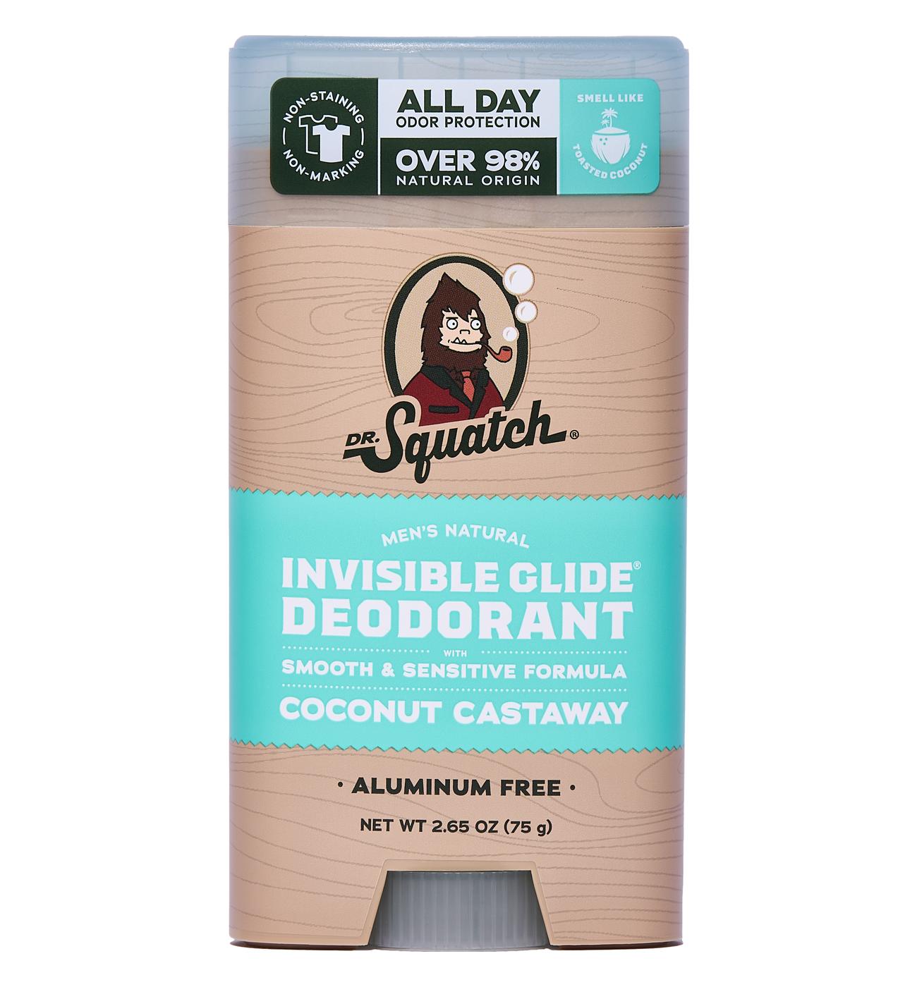 Dr. Squatch Men's Natural Invisible Glide Aluminum Free Deodorant Solid - Coconut Castaway