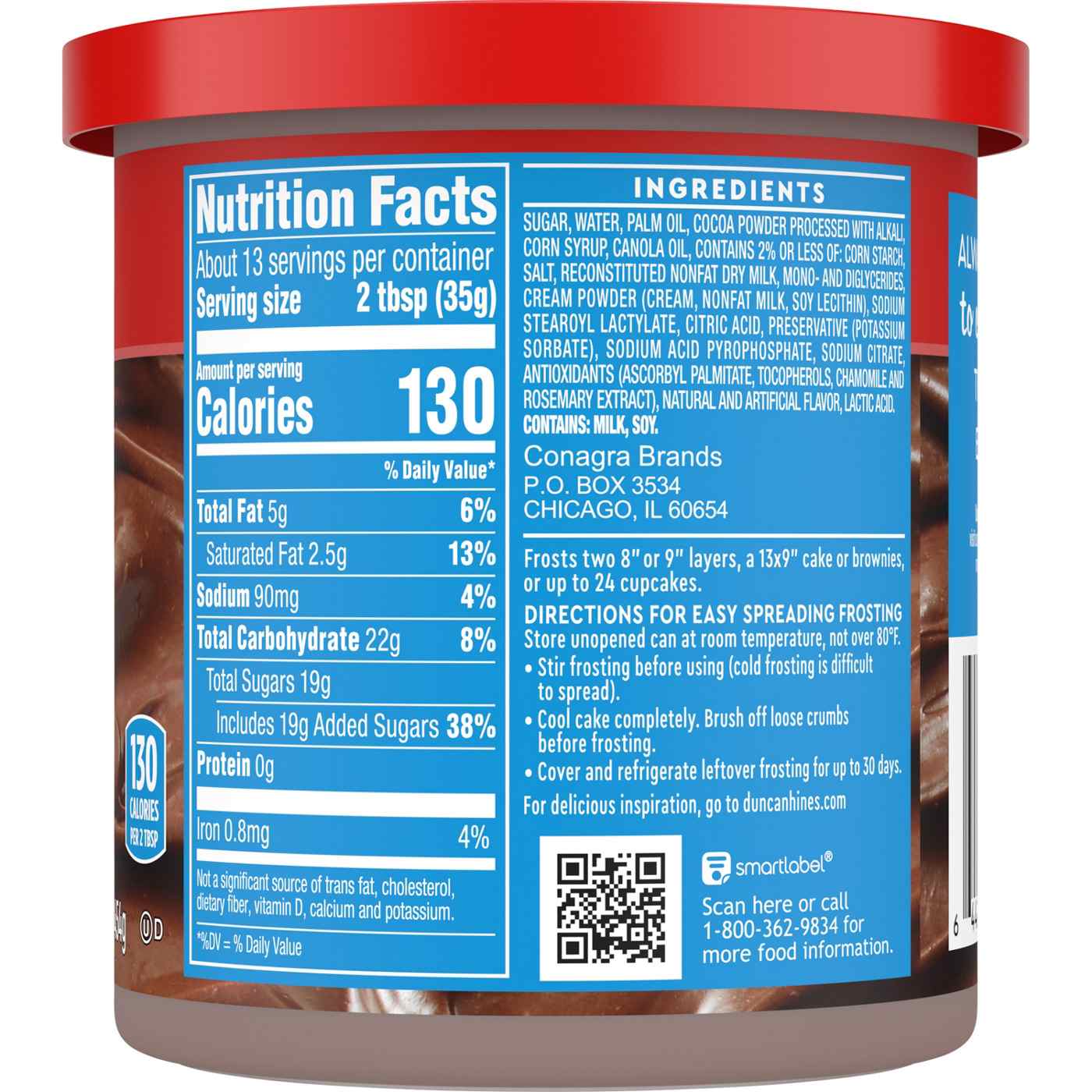 Whip up irresistible frosted baked goodies for your family with Duncan Hines Creamy Milk Chocolate Frosting. Rich milk chocolate flavor offers a classic taste and has a creamy frosting texture for easy spreading. This cake frosting is ideal for topping cupcakes, cakes and brownies. Pair this dessert topping with Duncan Hines baking mixes for a quick and easy treat. Each 16 ounce can of cupcake frosting is enough to generously frost two 8" or 9" cake layers, a 13" x 9" cake, a tray of brownies or up to 36 cupcakes. Store the unopened can at room temperature, stirring before use. Cover and refrigerate remaining frosting for up to 30 days. From whipped frosting, to single serve desserts, Duncan Hines has you covered when you’re ready to bake and create.