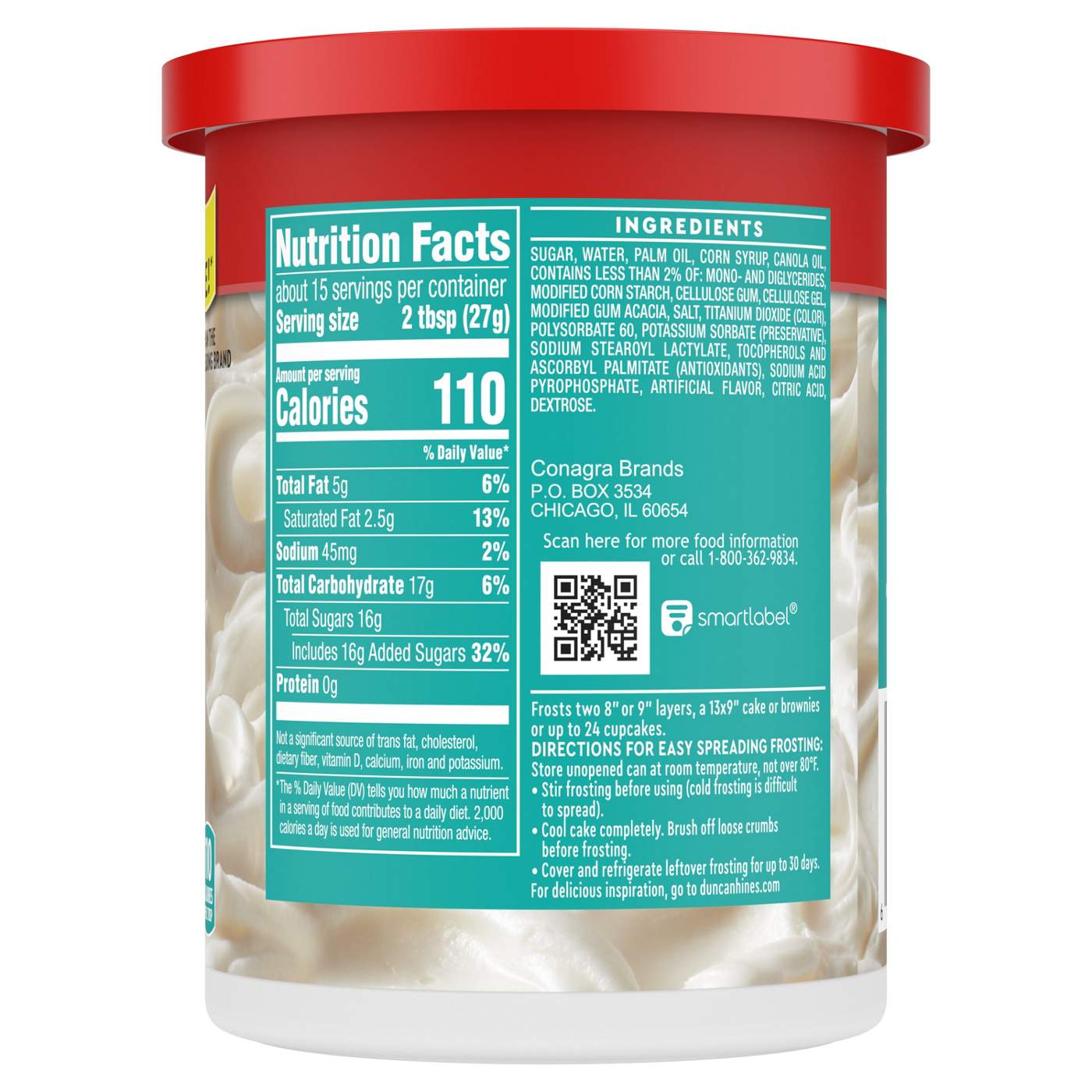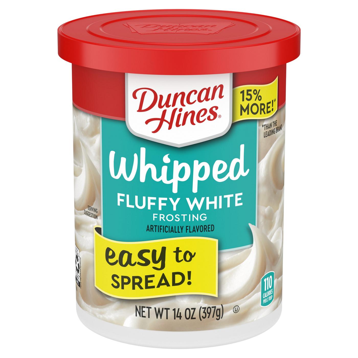 Duncan Hines Whipped White Frosting gives your cakes, cupcakes and brownies a decadent topping to make them special. Classic white frosting pairs well with all your favorite baked goods, and the whipped frosting texture makes this cupcake frosting easy to spread. Use it as birthday cake frosting to create a white background for the decorations, or turn your everyday brownies into a special treat with this dessert topping. Each 14 ounce can frosts two 8" or 9" cake layers, a 13x9" cake or brownies, or up to 36 cupcakes. Store the reclosable can at room temperature, stirring before use. Cover any remaining frosting and store in the refrigerator for up to 30 days. From whipped frosting, to single serve desserts, Duncan Hines has you covered when you’re ready to bake and create.