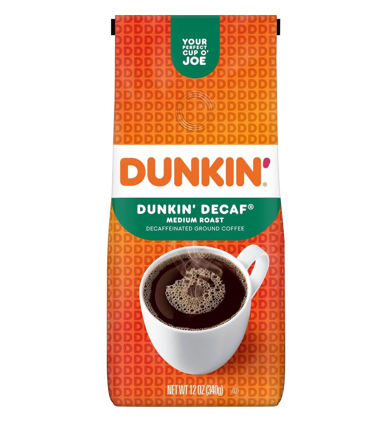 Brew up Dunkin’ deliciousness without all the caffeine. Dunkin’ Decaf coffee has all the rich, smooth flavor of Dunkin’ Original Blend medium roast coffee, but it’s caffeine free — perfect for enjoying the taste you love at home, anytime. Plus, it’s easy to brew with pretty much any method. Make it by the cup or by the pot, in a snap or as part of your slow morning ritual. Then customize it with your favorite creamers and sweeteners to make a drink that’s just your style. Or, enjoy it as-is — this taste will take you to your happy place no matter how you make it. Try this Dunkin’ decaffeinated coffee at home to make your day more flavorful.CONTAINS: One 12-oz. bag of Dunkin’ Decaf ground coffeeMEDIUM ROAST DECAF COFFEE: The rich, smooth flavor of Dunkin’ Original Blend coffee, without all the caffeineVERSATILE: Brew this ground coffee with whatever method you’re feelin’DUNKIN’ TASTE, YOUR PLACE: An easy way to enjoy delicious coffee at homeMAKE YOUR OWN FUN: Sip it as-is or use it for your favorite coffee recipe