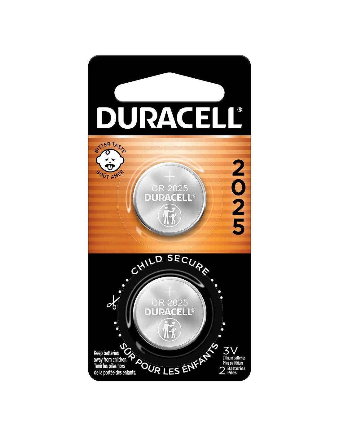 Duracell Lithium Coin CR2025 3 Volt batteries provide reliable, long-lasting power for your electronic, security, medical, and other compatible devices. These batteries are guaranteed for 10 years in storage, so you can rest assured they will be ready when you need them. Duracell has a tradition of investing in the extensive development of features that can help keep children safe, especially for its Lithium Coin batteries. With its latest innovation the CR2032 3 Volt cells are bitter on both sides! The non-toxic bitter coating on the cell that is designed to help discourage swallowing, is now applied on both sides of the cell. Duracell Lithium Coin CR2025 3 Volt batteries also come in a child-secure packaging which is nearly impossible to open without scissors. From storm prep to holiday needs, Duracell is the # 1 trusted battery brand.