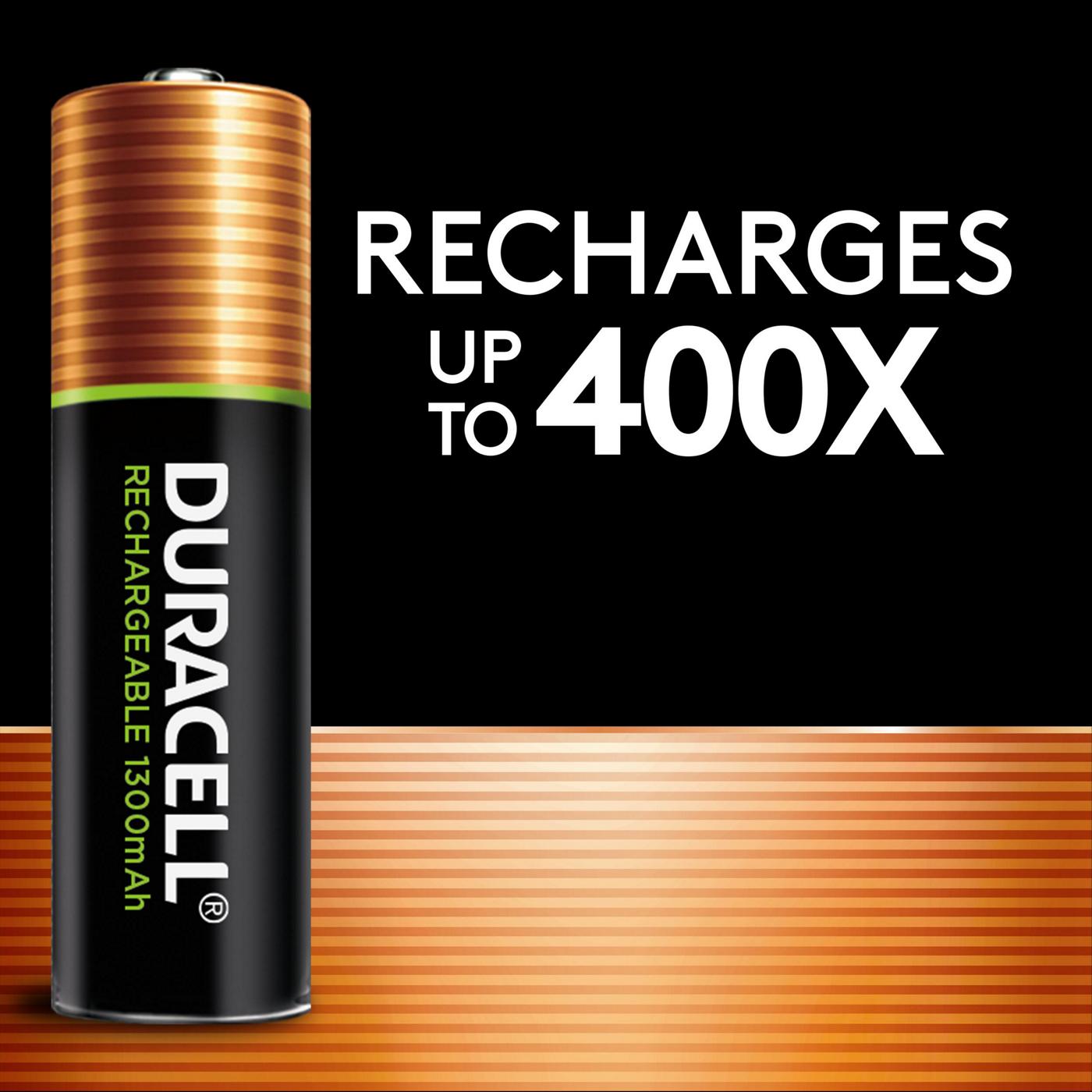Ideal for video game controllers, wireless electronics, baby monitors, and other heavy-use devices, Duracell Rechargeable Pre-Charged NiMH batteries let you charge hundreds of times, helping you save money. Plus, they are already charged and ready to use. Duracell Rechargeable batteries are guaranteed to last for 10 years in storage, and will hold a charge for up to 1 year when not in use. These powerful NiMH batteries work in any NiMH charger, and you can recharge them up to 400 times. From storm season to medical needs to the holidays, Duracell is the #1 trusted battery brand.