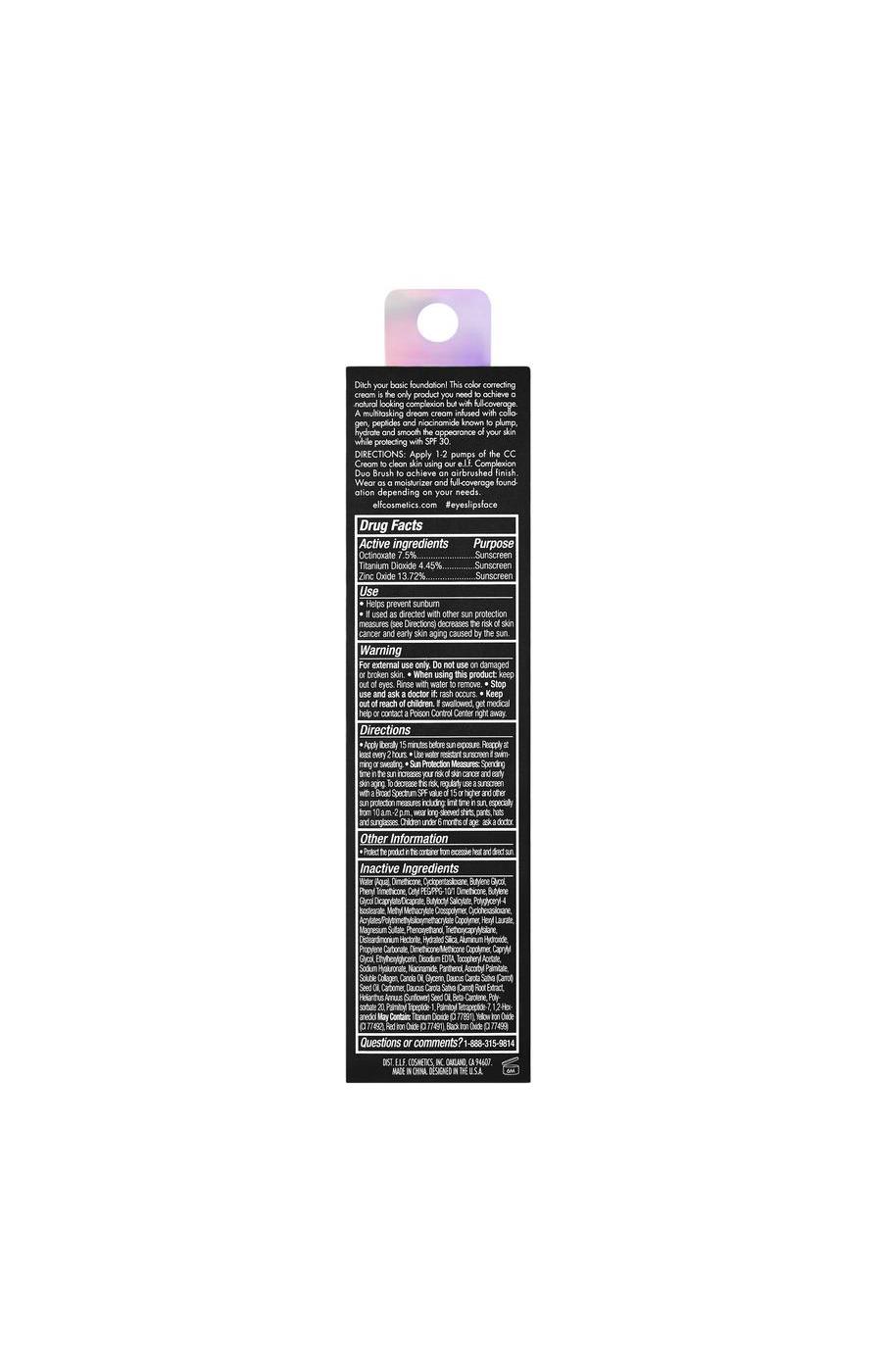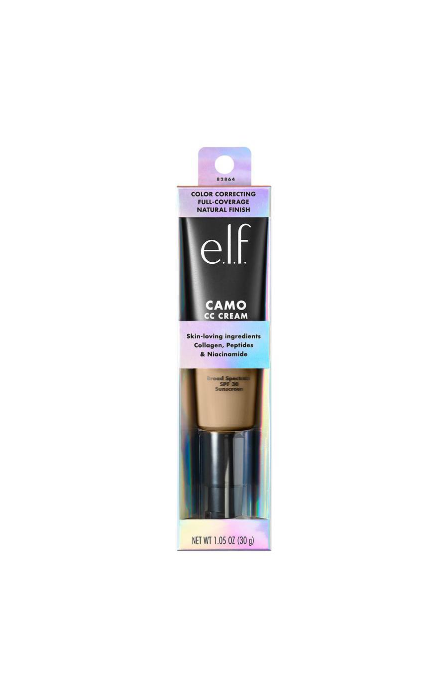 The e.l.f. Camo Color Correcting Cream in shade Light 205C is a liquid foundation that helps create an even complexion. It provides light coverage with a natural finish to help balance skin tone. The cruelty-free formula contains hyaluronic acid and offers SPF 30 protection.• Light-coverage color correcting cream• Helps to even out overall skin tone• Provides a soft, natural finish• Formulated with hydrating hyaluronic acid• Offers broad-spectrum SPF 30 protection• Cruelty-free liquid formula