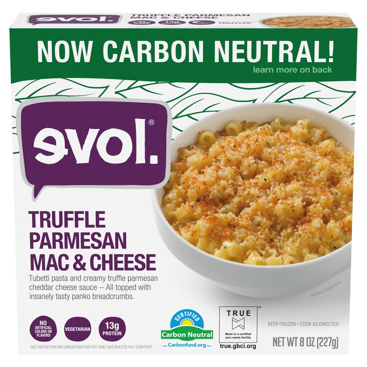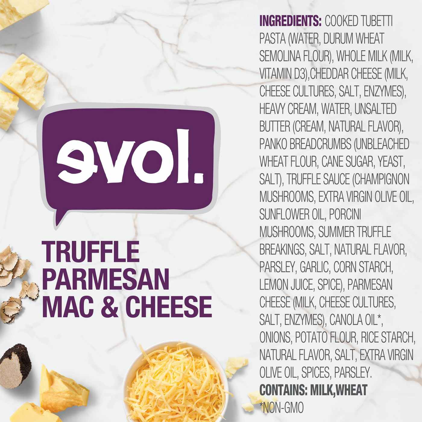 • One 8 oz. Evol Truffle Parmesan Mac & Cheese, Vegetarian, Single Serve Frozen Meal