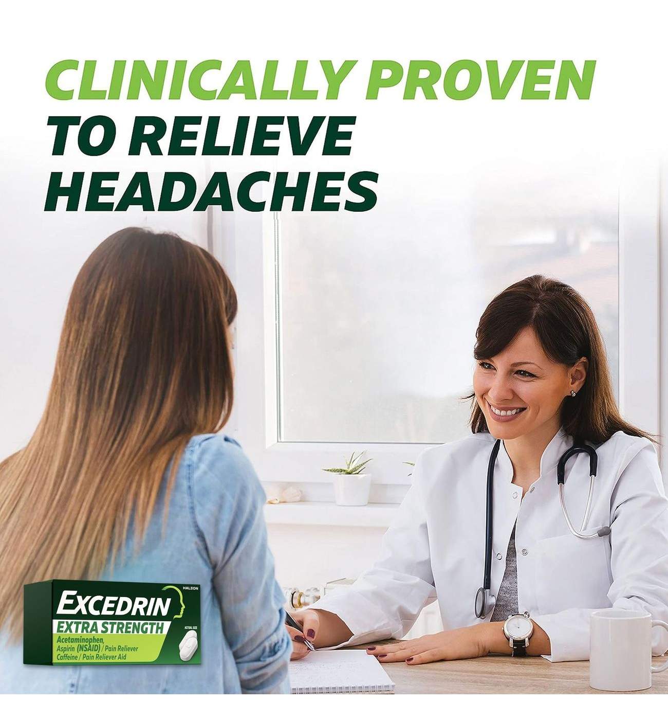 Excedrin Extra Strength Headache Relief Caplets are clinically proven pain relievers that act fast to alleviate various types of pain. Available in convenient caplet form, this non-prescription extra strength headache medicine works as hard as you do, combining aspirin and acetaminophen with caffeine. These active ingredients create a powerful formula with two pain fighters and a booster to offer temporary relief of aches and pains caused by headaches, colds, premenstrual and menstrual cramps, toothaches, muscular aches and arthritis. For some, relief with this Excedrin extra strength headache pain reliever can start in 15 minutes.• One bottle of 24 Excedrin Extra Strength Pain Relief Caplets• Extra strength pain reliever that relieves pain associated with headache, colds, menstrual cramps, toothaches, muscular aches and arthritis• Pain medicine for adults that is a clinically proven headache pain reliever• Excedrin Extra Strength caplets contain two pain fighters and a booster for enhanced effect• Pain reliever available in convenient caplet form• For some, headache relief can start in 15 minutes