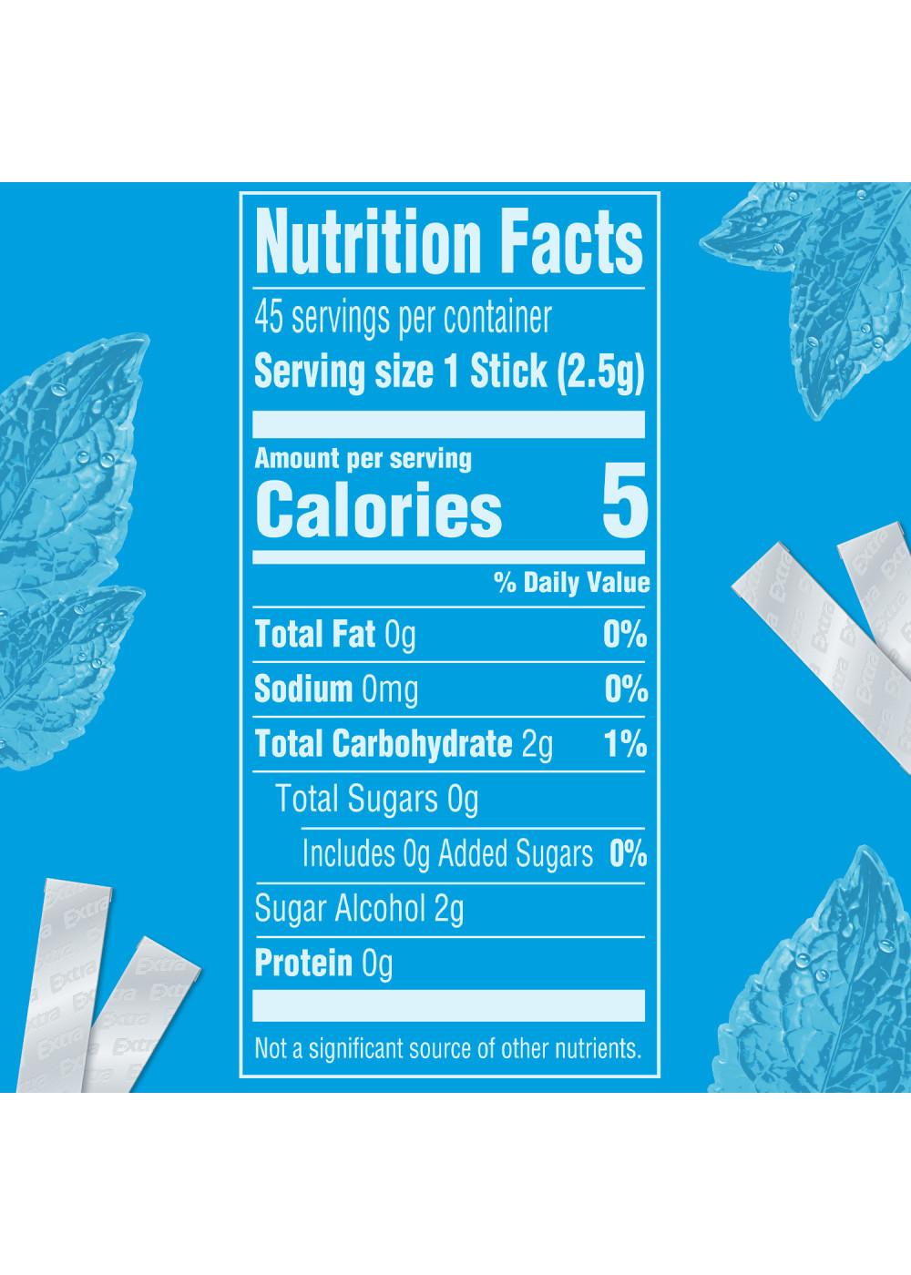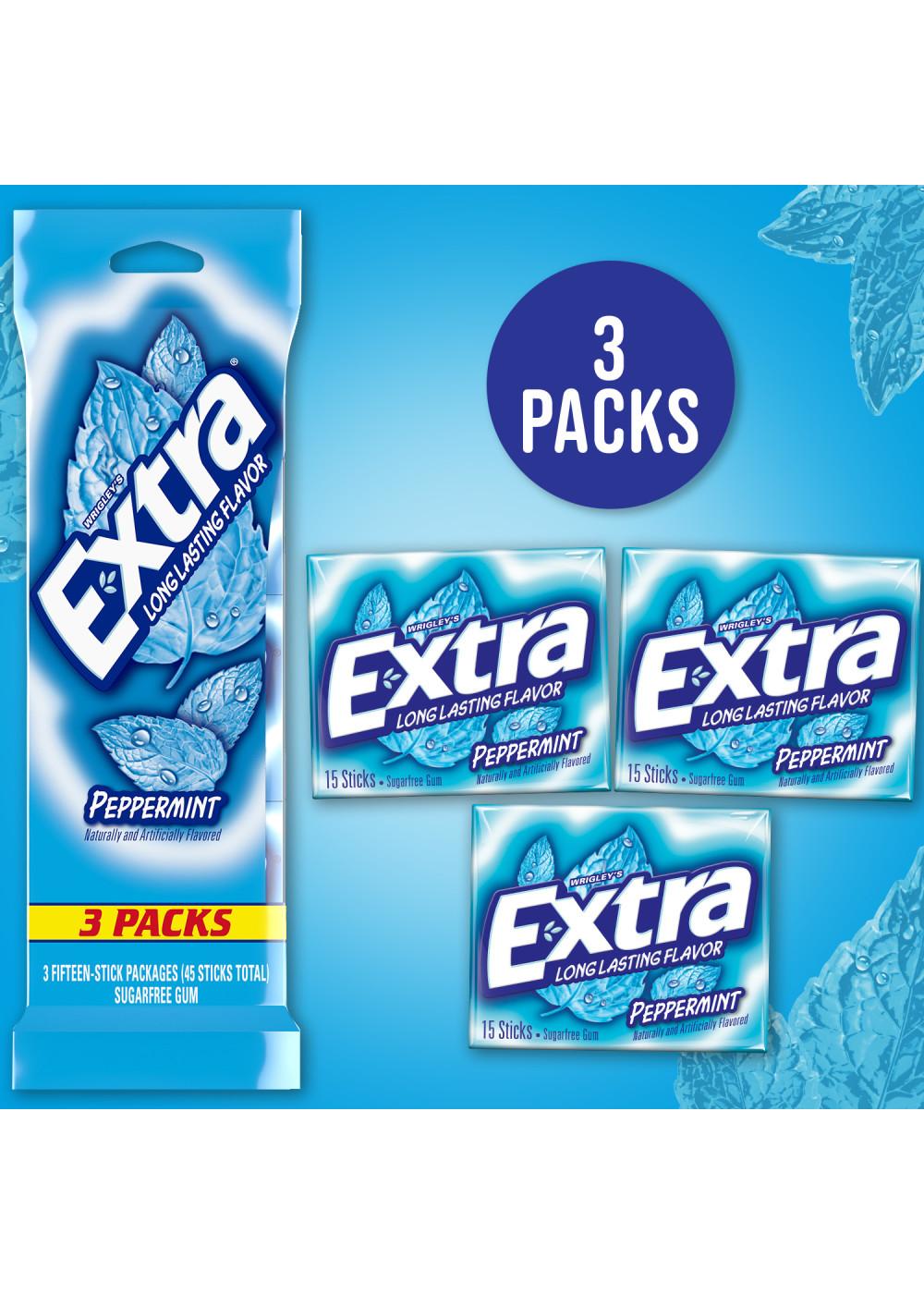 • Contains one (1) bag of 3 individually wrapped, 15-piece packs, of EXTRA Peppermint Sugarfree Gum
