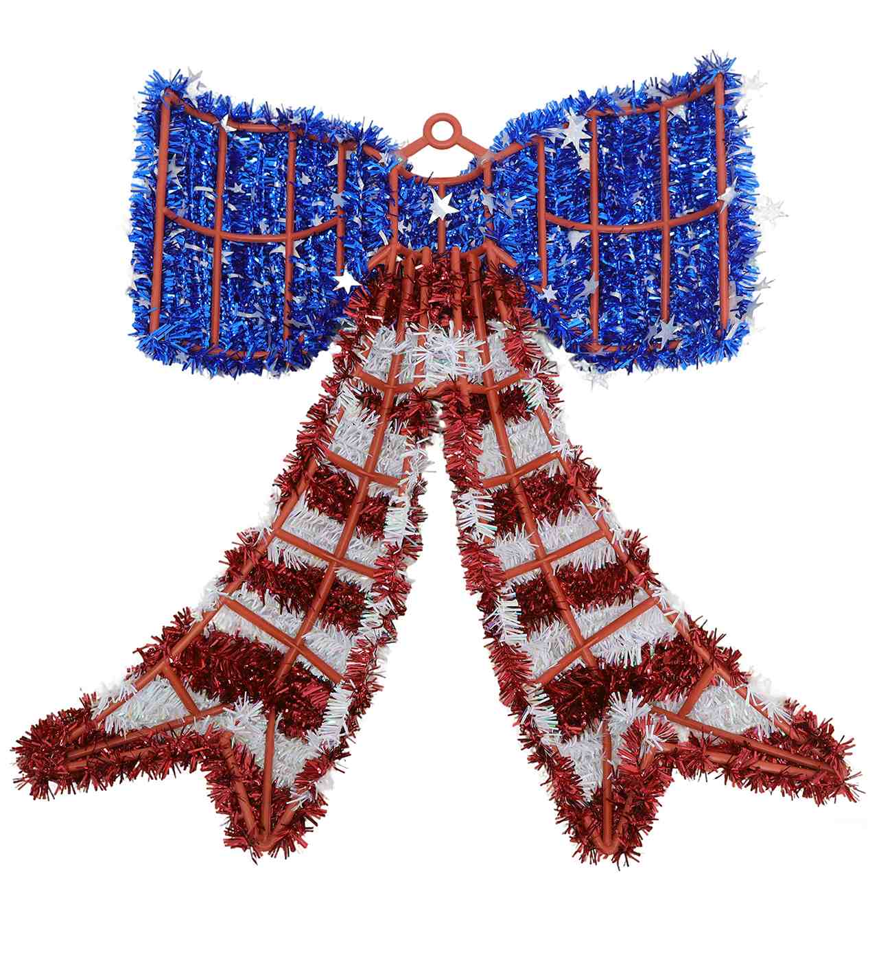 Whether you hang this out on your porch, your front door or back patio, this patriotic-themed bow wreath is sure to wow. A perfect decoration for the 250th anniversary of the USA this Fourth of July, it's also great for classrooms all year round.