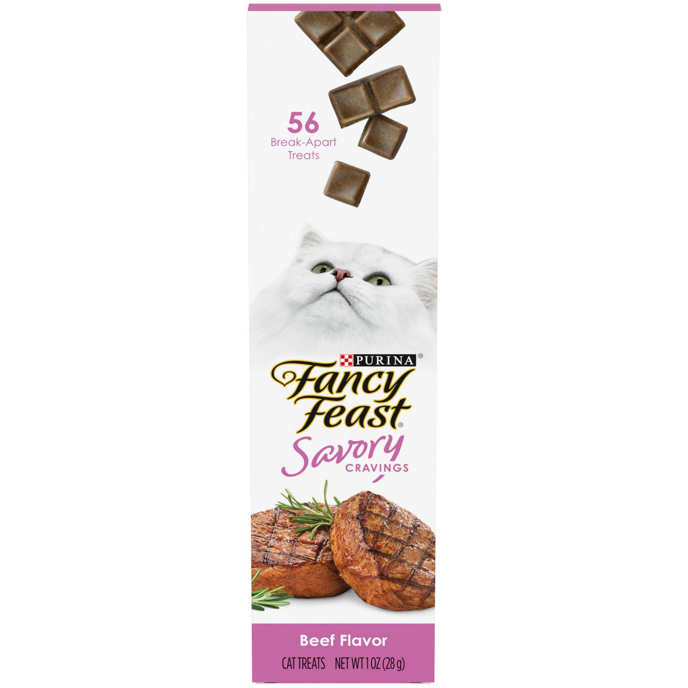 Break off a tender bite bursting with enticing beef flavor for your cat with Purina Fancy Feast Savory Cravings Beef Flavor Cat Treats. These Fancy Feast cat treats excite your cat with savory beef flavor and a tantalizing tender texture for an experience that goes beyond the ordinary. Each treat includes eight separate squares, allowing you to easily break them apart into smaller pieces to capture your cat's attention and extend the time you share together. Our limited ingredient cat treats offer the taste cats meow for and keep your feline waiting in anticipation for the next bite. We craft this Fancy Feast beef flavor formula without artificial flavors, colors or preservatives for a gourmet cat treat that also meets your ingredient expectations. Cats understand it's the little things that bring refinement to life. Give her a singular treating experience of exceptional flavor and tender texture with Purina Fancy Feast Savory Cravings Beef Flavor Cat Treats.