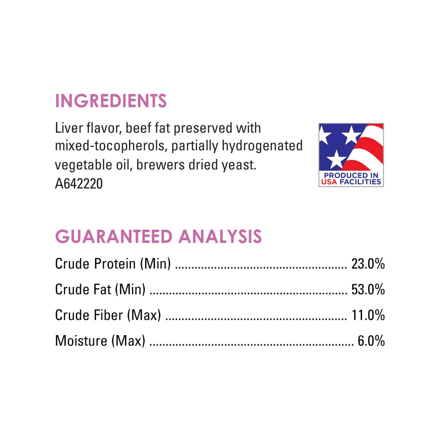 Liver Flavor, Beef Fat Preserved With Mixed-Tocopherols, Partially Hydrogenated Vegetable Oil, Brewers Dried Yeast. A642220Allergens and safety warnings