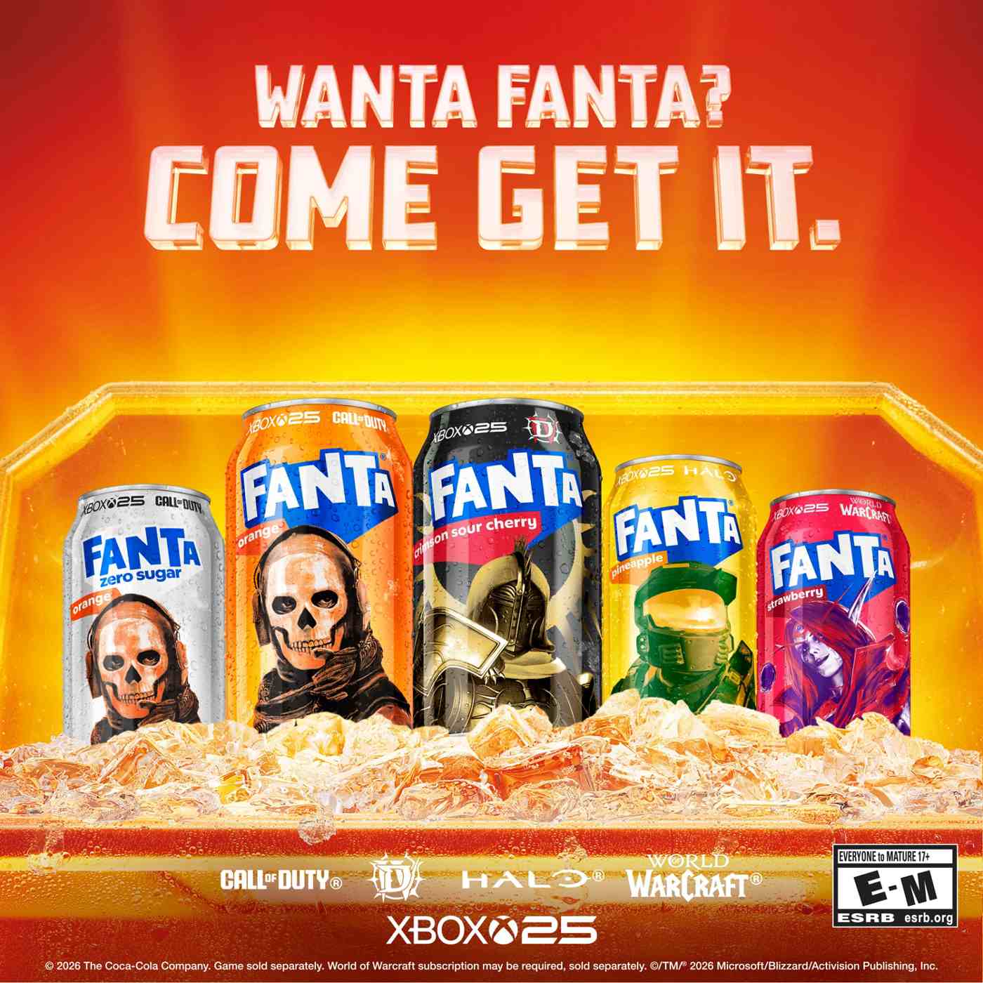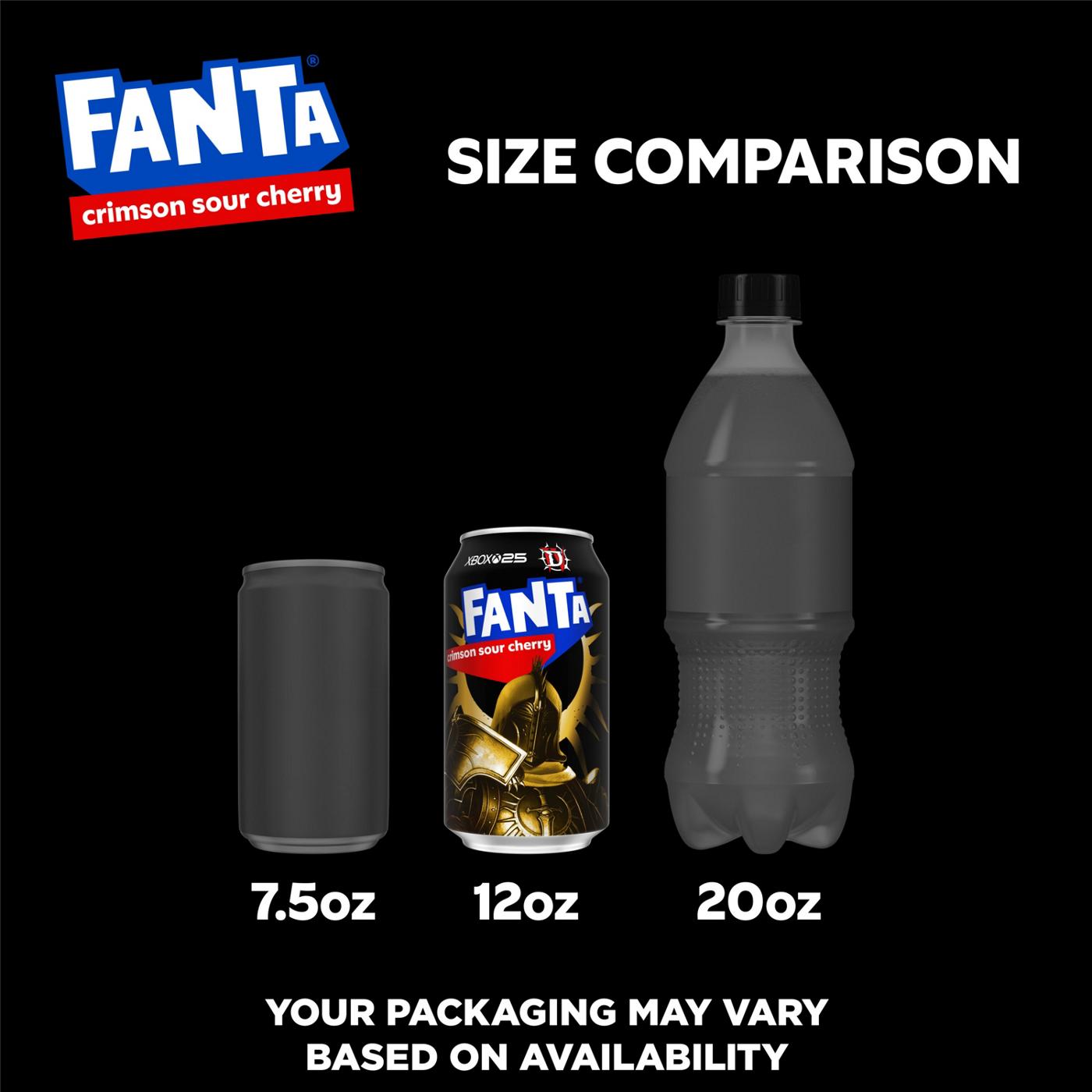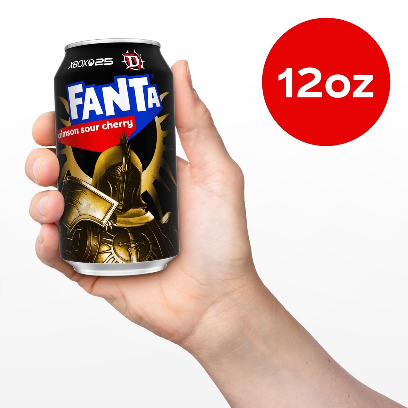 Fanta Crimson Sour Cherry liberates wants in a world busy talking about needs. This cherry flavored soda is all about deliciousness and fizzy refreshment, with a bright sour twist in every sip. It's not a Fanta if it doesn't taste delicious, and this Fanta soda proves it with a vibrant, sour cherry flavor made for snacking, gaming, or just kicking back with friends. Fanta is naturally flavored and caffeine-free-the focus stays on that playful, flavored soda sparkle in your glass.Fanta is taking deliciousness to epic new levels with the daring fusion of cherry and sour fruit-flavored notes with this brand-new, limited-edition flavor. This cherry flavored Fanta red soda leans into its special edition status, delivering a fizzy drink with a delicious flavor that stands out from your usual soft drink routine. Lip-smacking refreshment you don't need, but really, really want!To celebrate Xbox's 25th anniversary, Fanta Crimson Sour Cherry soda shows off limited-time Diablo IV packaging graphics that match its bold attitude. From movie nights to late-night snacking, this sour cherry flavored soda pop brings a playful edge. In a world full of need-to-do lists, this one simply asks: Wanta Fanta? Come Get It.
