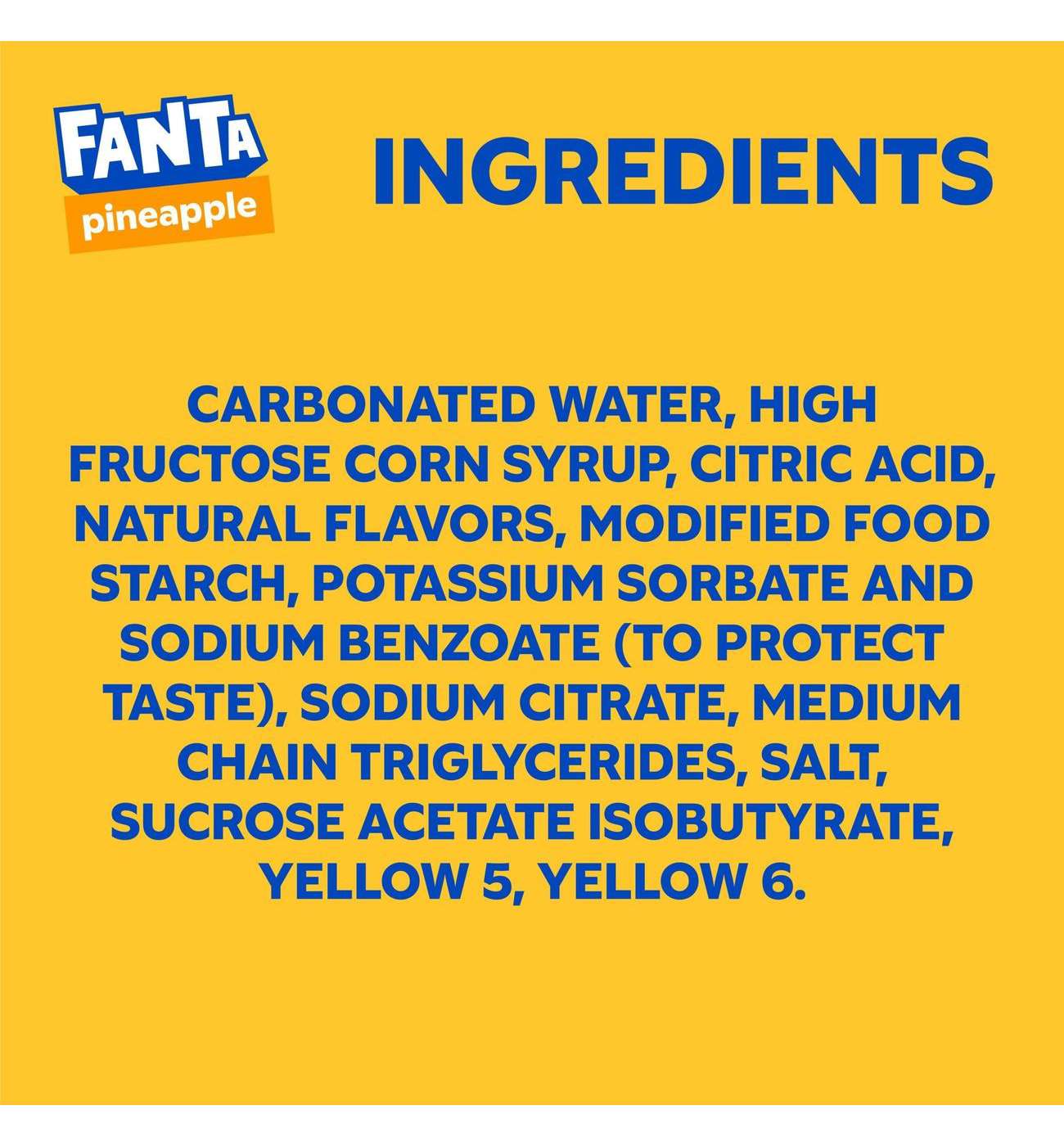 Welcome to a world bursting with flavor! Fanta Pineapple Soda is the delicious, caffeine-free soda that turns your everyday moments into vibrant celebrations. This fizzy and refreshing pineapple fruit-flavored soda glimmers with every sip. It's just what you want when you're looking for something to awaken your taste buds and add a burst of fun to any moment.Tropical pineapple fruit flavor offers a refreshing taste as playful as you are, so each sip of this delicious soda promises lip-smacking refreshment. Liberate your wants and turn everyday moments into moments of delight with Fanta Pineapple Soda.Whether you're planning a party, pairing with your favorite snack or simply enjoying a pop of flavor, Fanta Pineapple Soda is the drink you don't need but really, really want. So go ahead, embrace the lip-smacking refreshment and add a burst of fun to any occasion. At Fanta, we only have one question for you: Wanta?