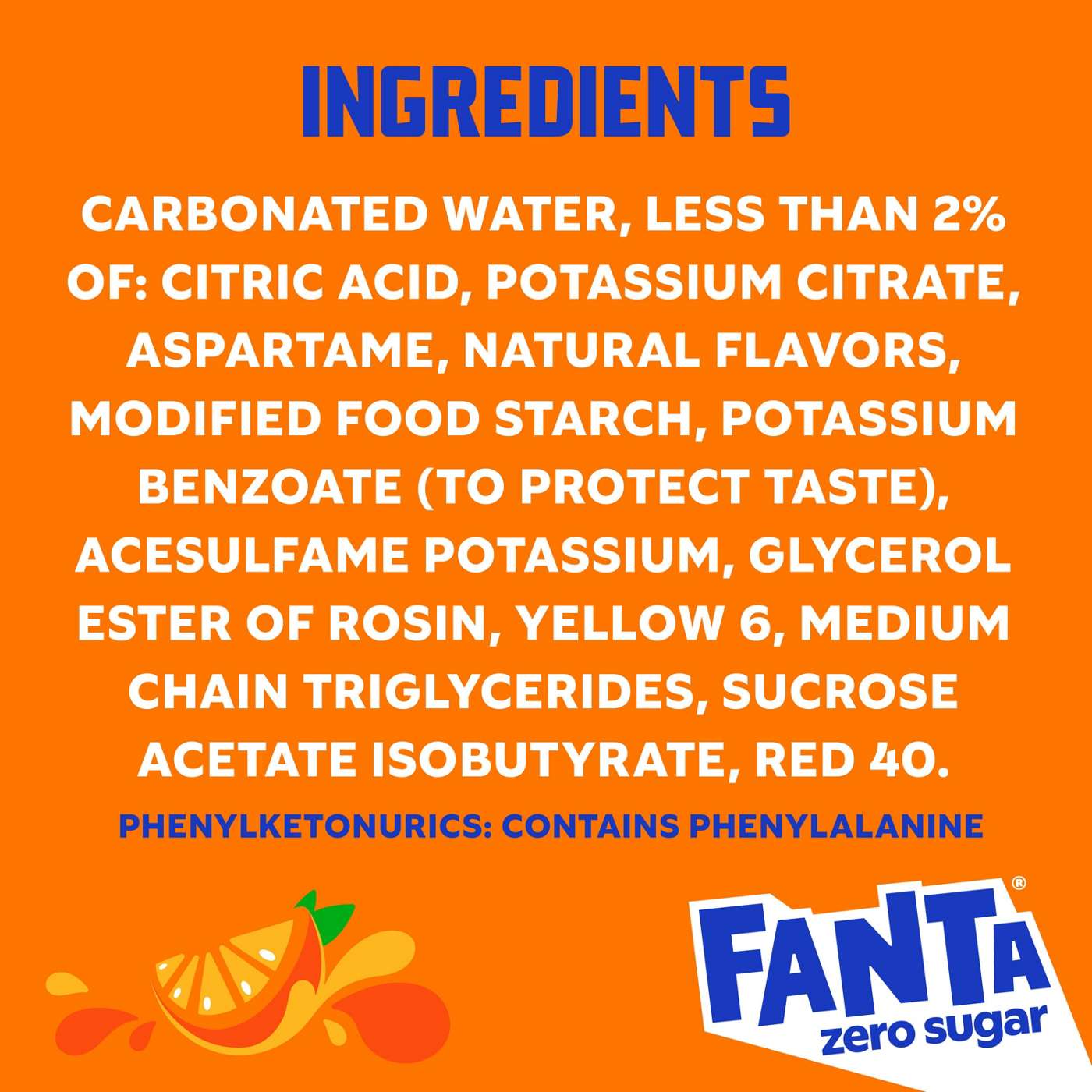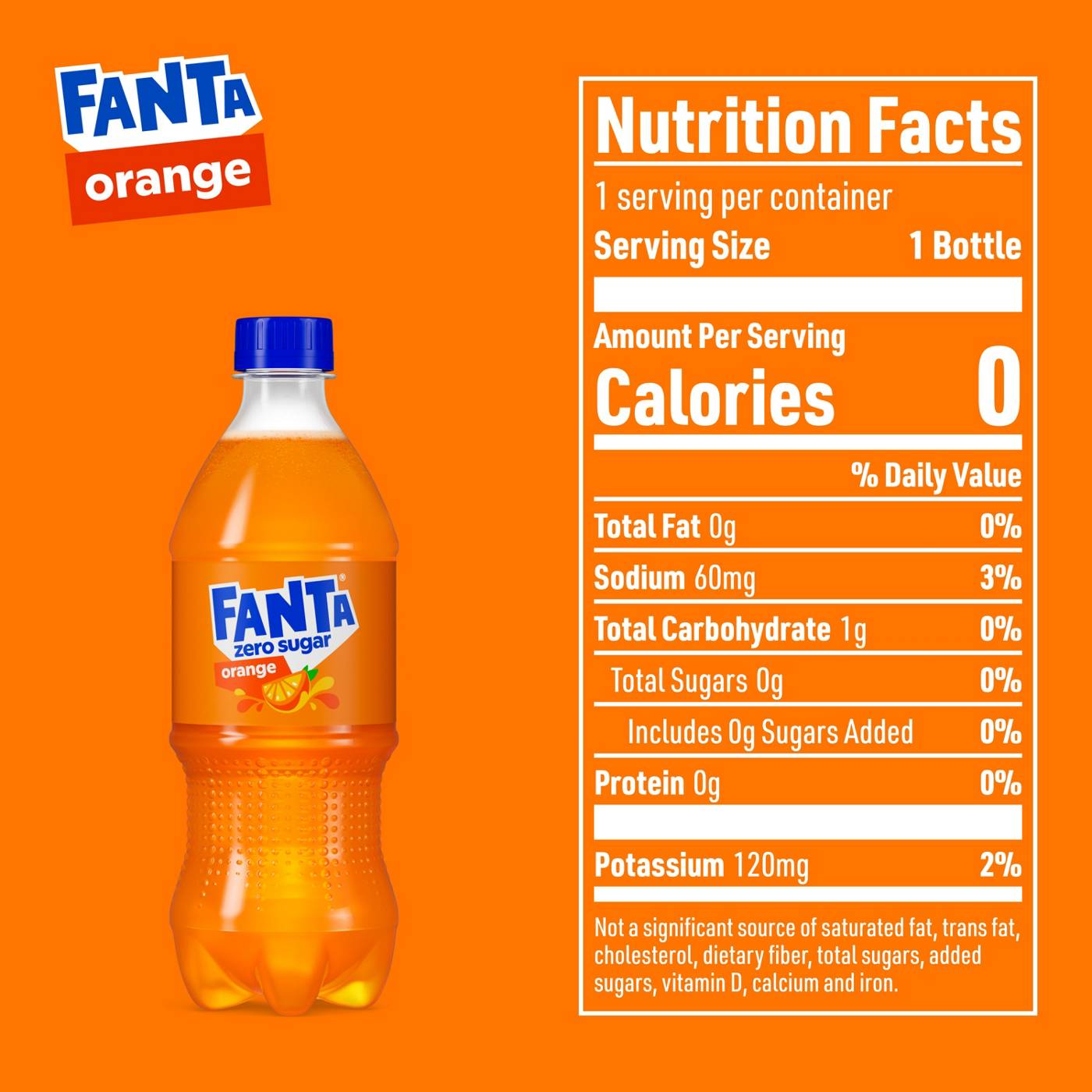 Ride the delicious orange rollercoaster of flavor.In a world that's focused on what you need, Fanta Orange Zero Sugar Soda is here to satisfy your delicious wants. This caffeine-free soft drink is not just a drink, it's a burst of fizzy refreshment that liberates your taste buds from the mundane. Dive into the vibrant, fruity-flavored deliciousness and experience a flavor discovery that glimmers with every sip.Perfect for snacking or enjoying on a road trip, Fanta Orange Zero Sugar Soda brings crisp, lip-smacking refreshment to your every day. Fanta Orange Zero Sugar is more than just a zero sugar soda; it's a delightfully fizzy carbonated drink that brings the fun every time you pop one open. From party drinks to movie night, Fanta adds a touch of fruity-flavored fun to any occasion.Whether you're planning a party, grabbing a snack, or simply enjoying a pop of flavor, Fanta Orange Zero Sugar Soda is the drink you don't need but really, really want. So go ahead, embrace that lip-smacking refreshment you want and add a burst of fun to any occasion. At Fanta, we only have one question for you: Wanta?