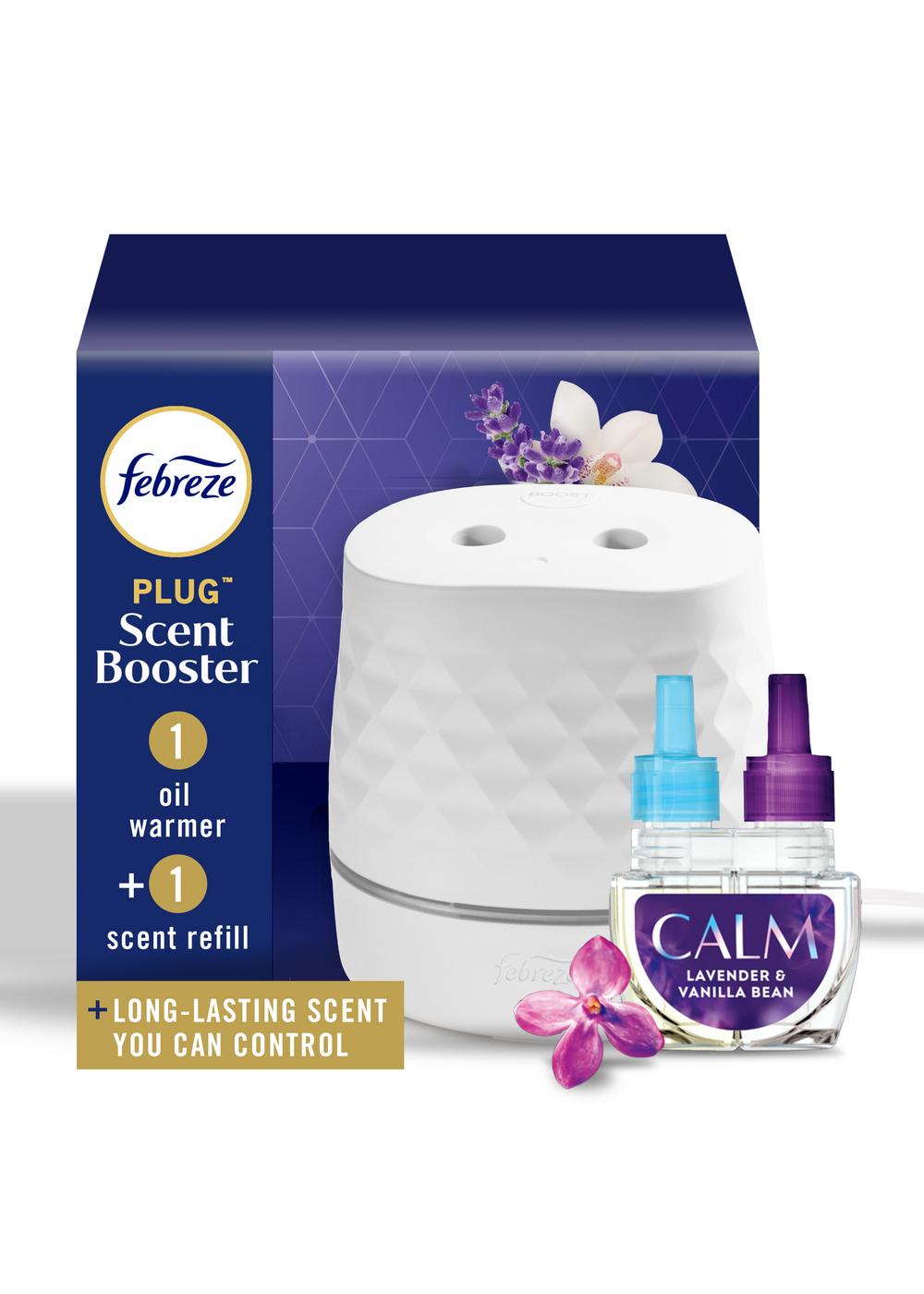 Love Febreze PLUG but wish you had more control over its scent? Now you can get the scent you want where you want it with Febreze Plug Scent Booster. More than a typical wall plug in, this unique oil diffuser provides first-day freshness for 50 days (on low) with more scent control than ever before.Wrap your senses in creamy vanilla, delicate florals, and warm sandalwood with Downy Calm. Control your scent, your way: Adjust scent intensity levels from high to low (and even off when you’re away) based on your preference and space. And when the continuous scent isn’t enough, hit the Boost button for 40 minutes of nose-wowing freshness. Conveniently works with your favorite existing Febreze PLUG refills. This nifty device also comes with a cord so you can place it high, low, anywhere you want it… and make scent a centerpiece, not a wallflower. Plus, the simple and sleek design of this oil warmer air freshener is a perfect match to any décor, whether it’s in your living room, bathroom, or kitchen. Get Febreze PLUG Scent Booster and get more scent, more control, just the way you like it.