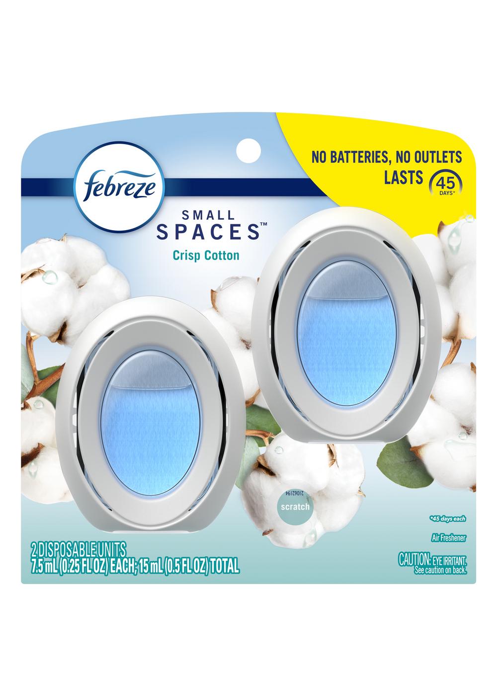 Stuck between a stink and a tight space? No worries! Febreze Small Spaces air fresheners are now longer lasting, for up to 45 days. So, they’re the perfect, all-in-one odor fighter for all those tiny spots you forget need to be freshened up: We’re talkin’ bathrooms, closets, the corner where your cat’s litter box lives, and more. Just press firmly to activate, then set one down wherever you want continuous freshness… it’ll keep fighting those small-room stinks for 45 days. Want to keep hitting refresh around your home? Give other scents a try and keep spreading that fresh joy around.