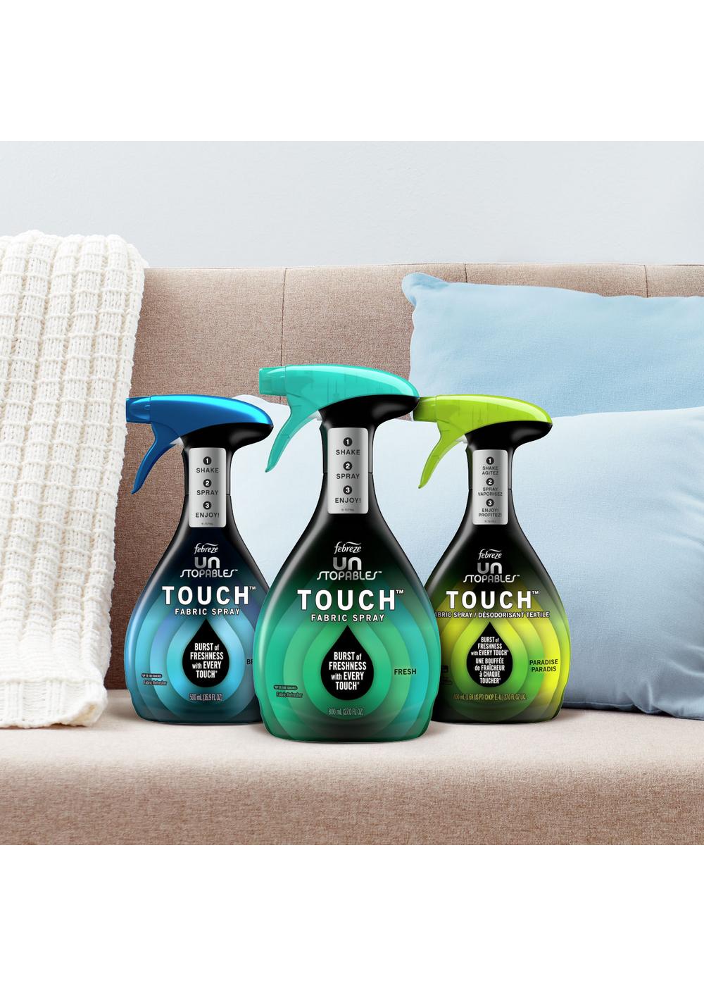Big fan of spraying your fabrics with fresh scents but wish they lasted longer? Febreze Unstopables Touch Fabric Spray odor fighter uses breakthrough touch-activated scent technology to store scents in right in your fabrics, so you get a burst of freshness with every step, pat, and fluff. Get a fresh-tastic experience unlike any other, as walking on carpets and rugs, cuddling with your favorite blankets and pillows, and even lounging on the furniture activates its scent technology. With the airy, just-washed scent of Fresh, you'll want this crave-worthy scent within reach. Level up those hard-to-wash, most loved soft surfaces with Febreze Unstopables Touch Fabric Refresher. You'll stamp out stinks and transform your home into a touchable scent sanctuary.