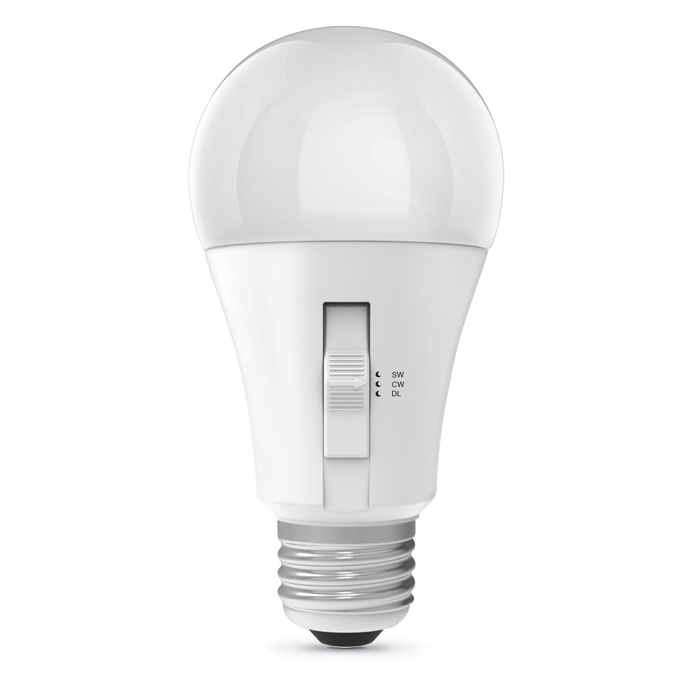 Get the right color light any time of day with the OM100/3CCTCA/MM/LEDI color selectable 100-watt equivalent A19 LED bulb from Feit Electric. Use the toggle on the bulb to select 2700K Soft White, 4000K Cool White, or 5000K Daylight color temperatures. Whether you want to energize your morning, focus on your tasks during the day, or wind down for the night, you can get the right energy saving LED light in any room. any time. Integrated sensors turn this bulb on automatically whenever motion is detected. No additional hardware or special apps required.