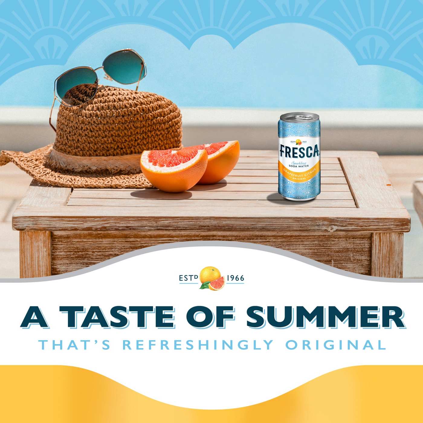 A unique citrus twist and refreshing grapefruit flavor has made this one-of-a-kind beverage a crowd favorite since the first sip. Enjoying a Fresca is the quick and easy way to elevate the everyday.Fresca is a sparkling soda that loves turning any dull moment into a moment of celebration and effervescent fun. It's that perfect blend of zero sugar and caffeine-free sparkling sensation that can be enjoyed in a cocktail or all on its own. And it's that refreshing ability to always freshen the vibes by adding in a little extra zero calorie fancy to any occasion. Let's be honest, the Fresca life is the refreshing side of life we all love and crave. So come on, let's get our sparkle on together.