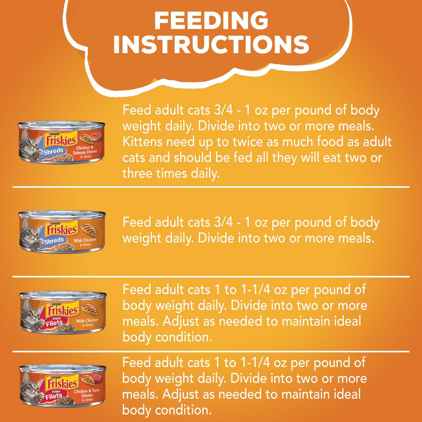 Prime Filets With Chicken in Gravy: Crude Protein (Min)…10.0%, Crude Fat (Min)…2.0%, Crude Fiber (Max)…1.0%, Moisture (Max)…82.0%, Ash (Max)…2.8%, Taurine (Min)…0.05%; Prime Filets Chicken & Tuna Dinner in Gravy: Crude Protein (Min)…10.0%, Crude Fat (Min)…2.0%, Crude Fiber (Max)…1.0%, Moisture (Max)…82.0%, Ash (Max)…2.8%, Taurine (Min)…0.05%; Shreds Chicken & Salmon Dinner in Gravy: Crude Protein (Min) 9.0%, Crude Fat (Min) 2.5%, Crude Fiber (Max) 1.0%, Moisture (Max) 82.0%, Ash (Max) 2.5%, Taurine (Min) 0.05%; Shreds With Chicken in Gravy: Crude Protein (Min) 9.0%, Crude Fat (Min) 2.5%, Crude Fiber (Max) 1.0%, Moisture (Max) 82.0%, Ash (Max) 2.5%, Taurine (Min) 0.05%