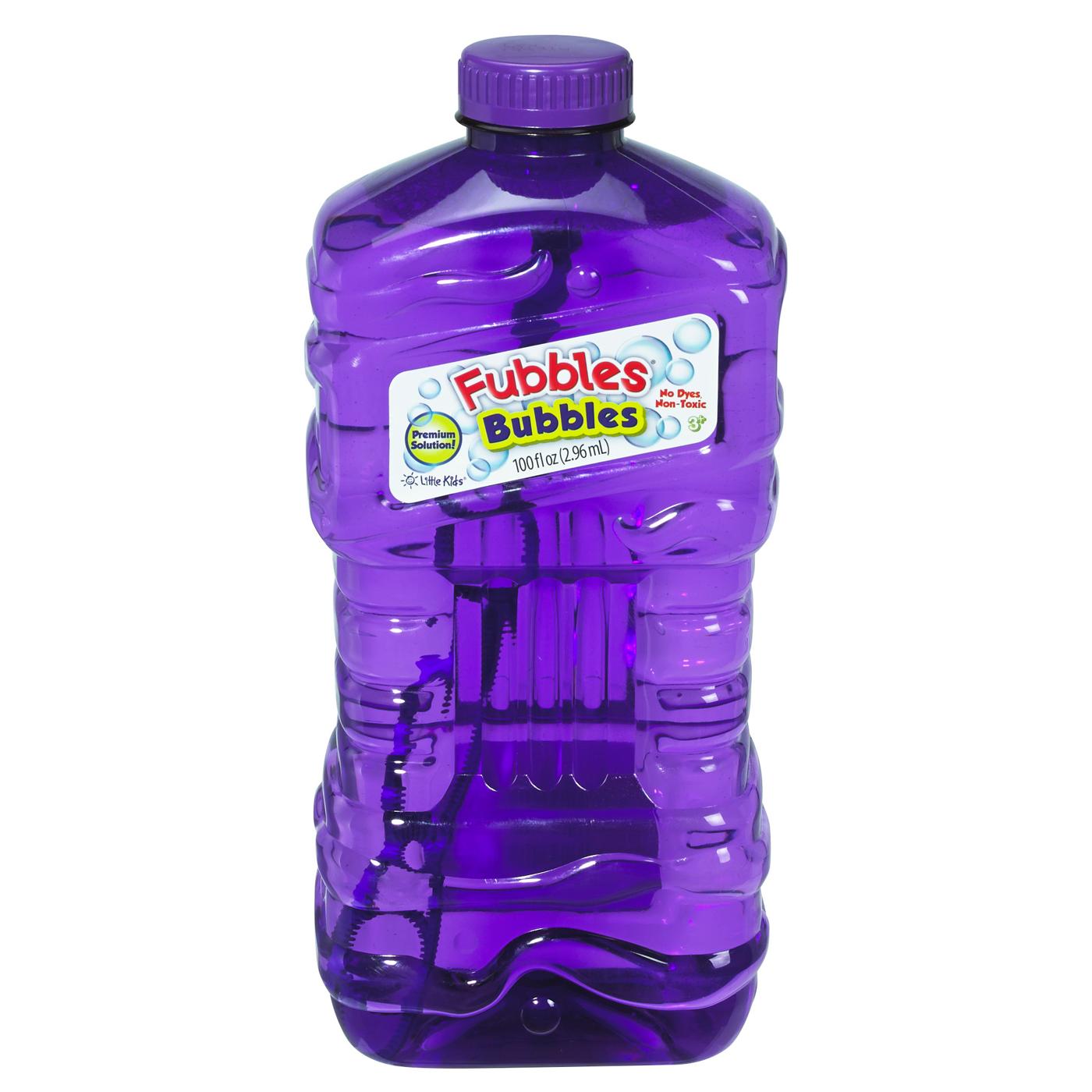 Put the fun in bubbles and refill all your favorite bubble toys with Fubbles Bubbles! Blow colorful, long-lasting bubbles for tons of bubble fun! Each bottle of Fubbles Bubbles includes 100 fl oz of premium bubble solution and a bubble wand. No stains, no dyes and non-toxic! Recommended for ages 3+.