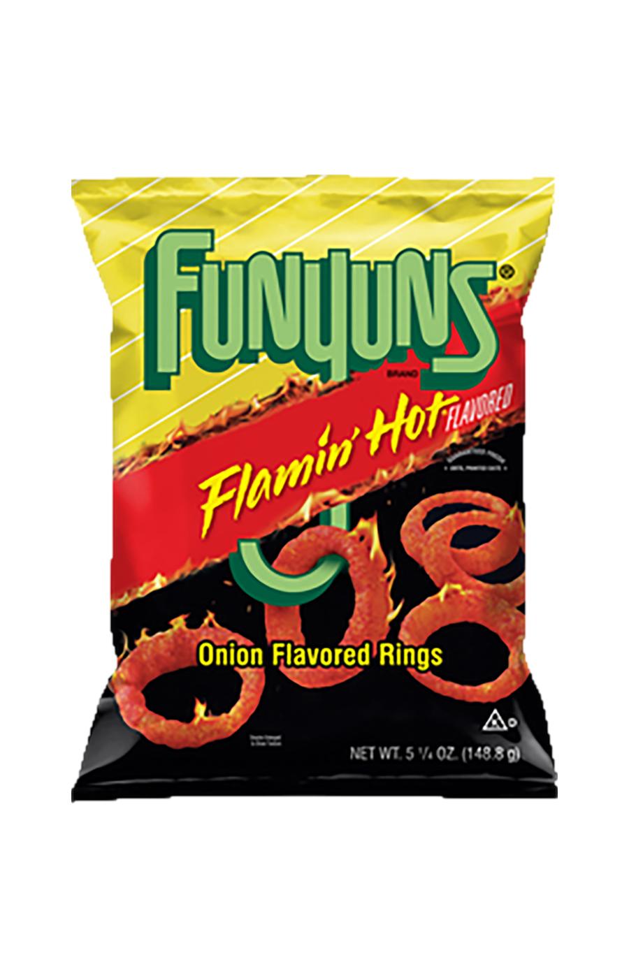 FUNYUNS Flamin' Hot Onion-Flavored Rings are a deliciously different snack that's fun to eat, with a crisp texture and flamin' hot onion flavor. Next time you're in the mood for a tasty treat that's out of the ordinary, give them a try.