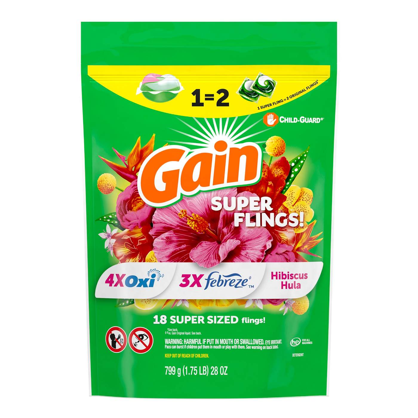 Gain Super Sized Flings! Happy HE Laundry Detergent Pacs - Hibiscus Hula