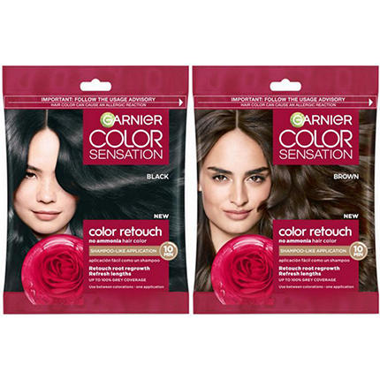 Keep your hair color looking its best with Garnier Color Sensation Color Retouch in Darkest Brown. This kit is specifically designed to touch up roots and new growth between full colorings. The no-ammonia formula offers a simple, 10-minute application that is as easy as shampooing to blend your roots for a seamless look.• Specifically formulated to match leading darkest brown shades, including those from salon brands.• No-ammonia creme offers a gentle and more pleasant coloring experience.• The easy-to-use format allows for targeted application on the root line.• Leaves hair color looking uniform and refreshed from root to tip.