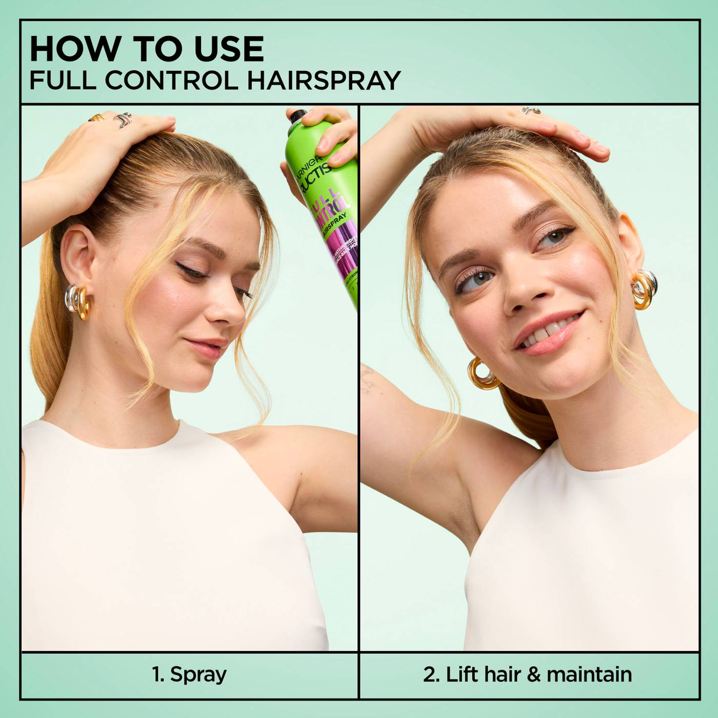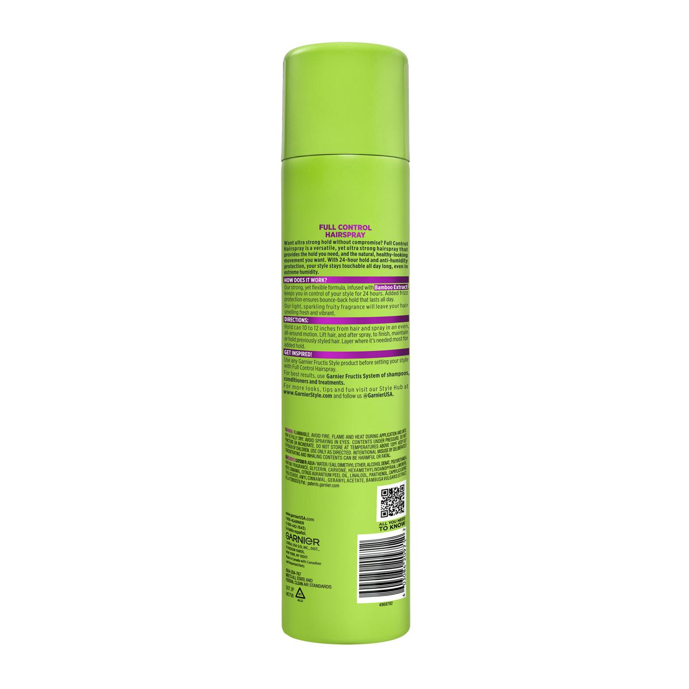Take charge of your hairstyle with Garnier Fructis Style Full Control Hair Spray. This hairspray, packaged in a lively green aerosol can, provides an ultra-strong level 4 hold to keep your hair looking great all day. It helps you maintain full control of your style and addresses concerns of hair damage.• Provides an ultra-strong, level 4 hold for all-day style control• Helps maintain your hairstyle with a long-lasting finish• Formulated to help with concerns of hair damage