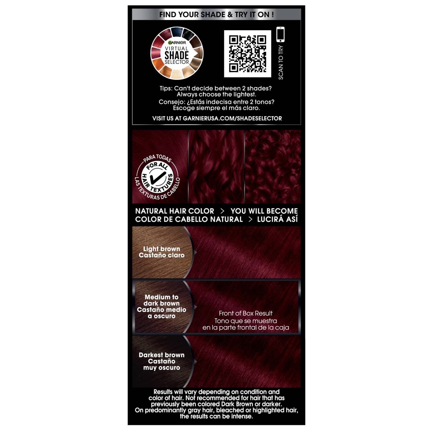 IMPORTANT: Hair color can cause an allergic reaction. Do not use if you’ve already had a reaction to a hair color product or if scalp is sensitive, itchy or damaged. Tattoos may increase risk of an allergic reaction. Do skin allergy test 48 hours before each use of this product. Don’t use over compound henna or progressive color. Wait at least 14 days after bleach, relaxing or perm before use. Don’t use on children. This is a safety summary. Read all labeling and instructions completely.