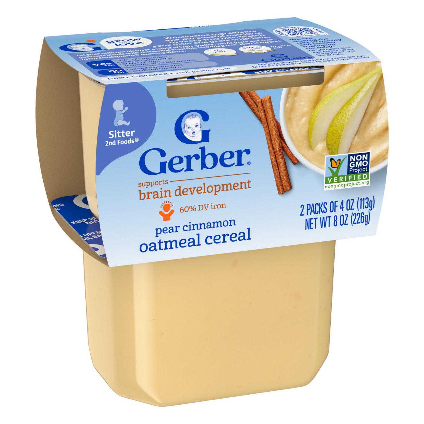 Gerber Stage 2 Baby Food - Pear Cinnamon Oatmeal Cereal, 4 oz Tubs