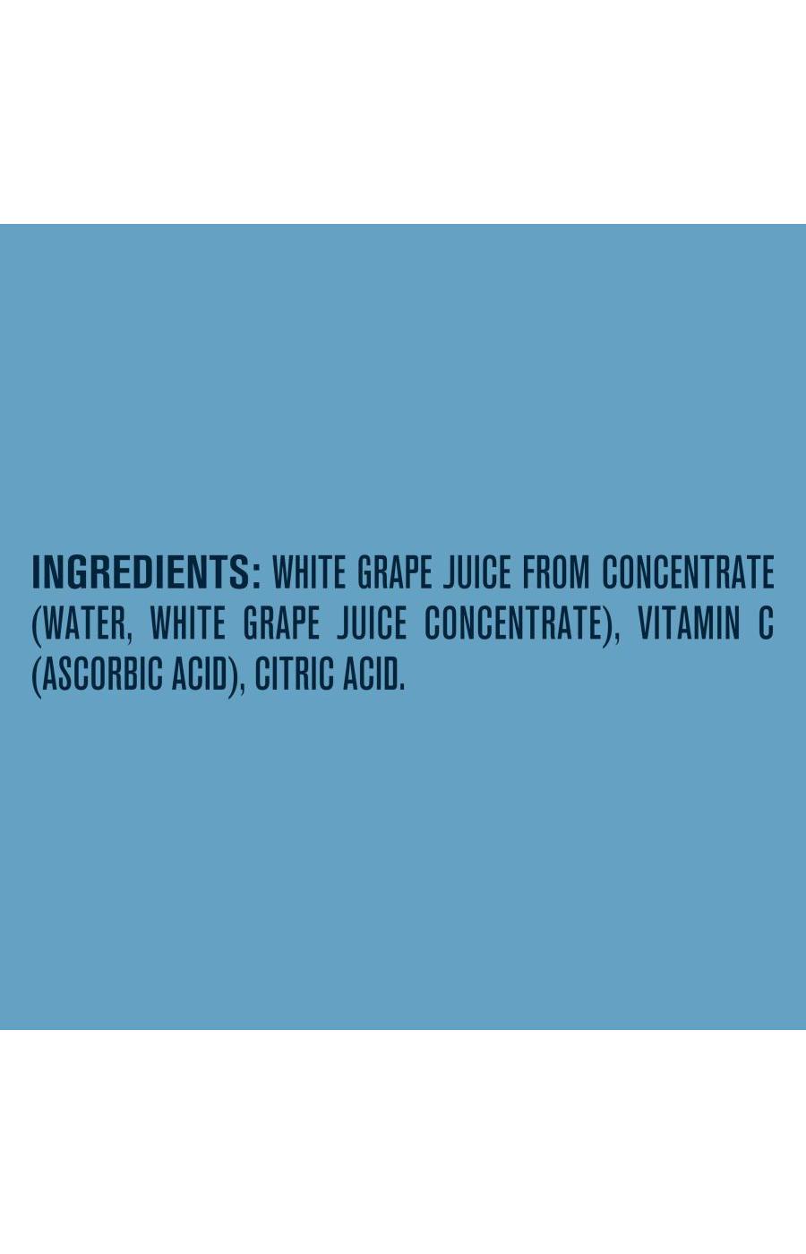 White Grape Juice from Concentrate (Water, White Grape Juice Concentrate), Vitamin C (Ascorbic Acid), Citric Acid.Allergens and safety warnings