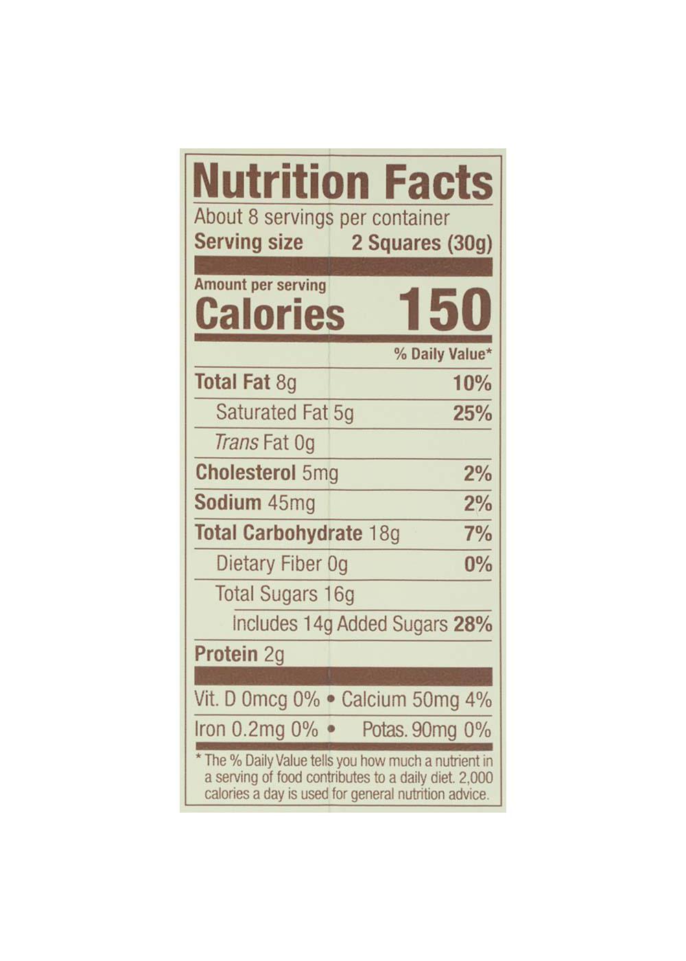 Serving Size2.00 squares- Amount Per ServingCalories150