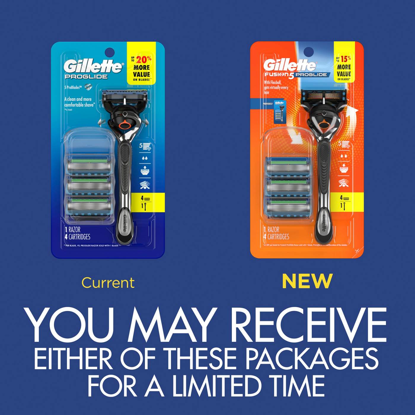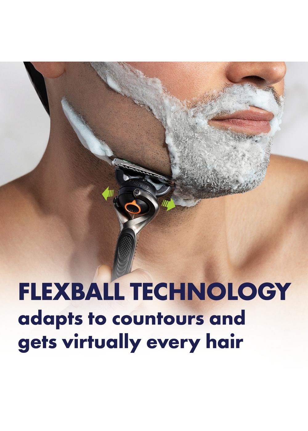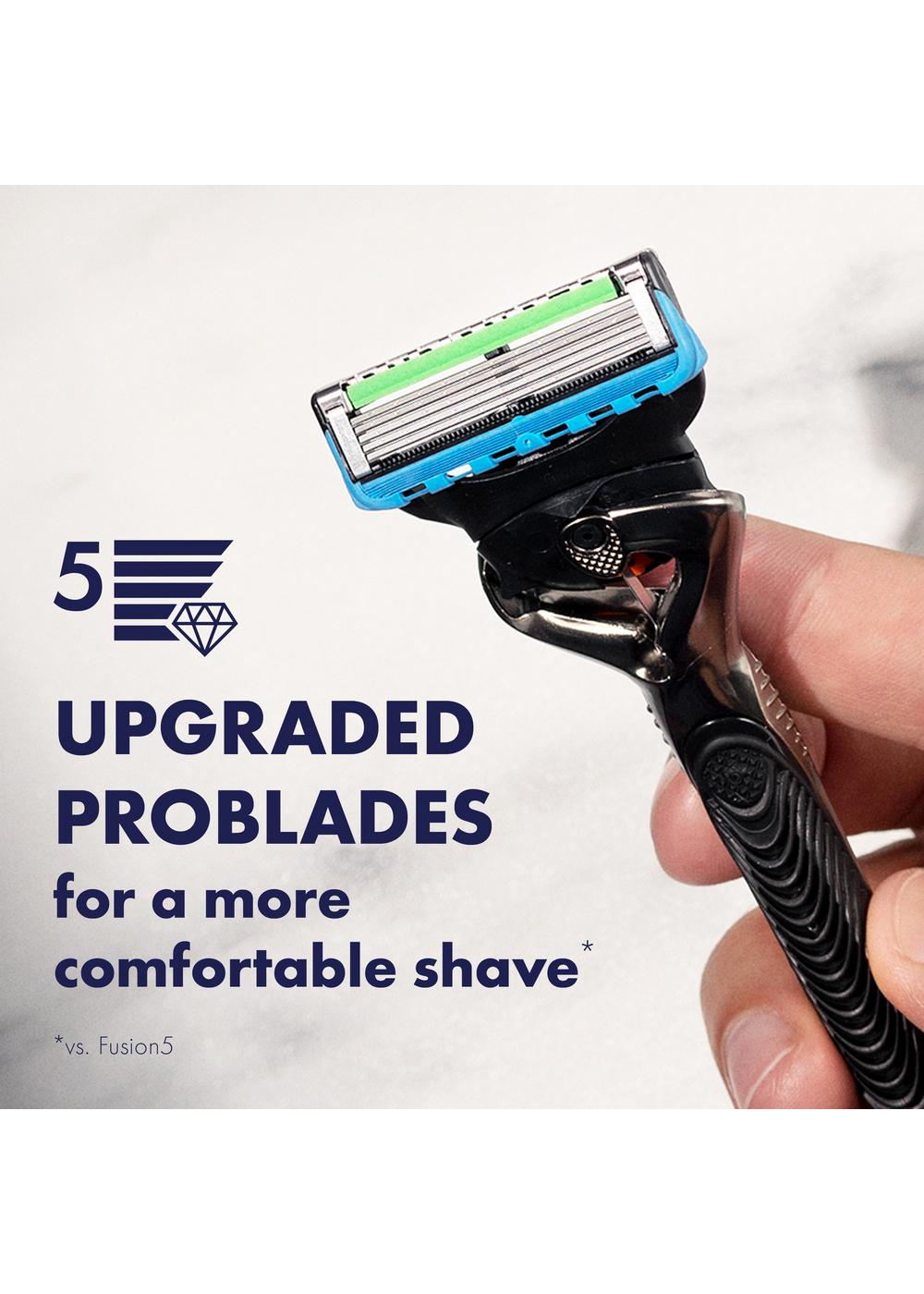 The Gillette Fusion5 ProGlide razor for men provides the iconic Gillette shave precision with comfort and style. This five-bladed men's razor with FlexBall handle technology, features a larger lubrication strip for a smoother* glide to your shave. This larger lubrastrip also fades when you are no longer getting an optimal shave. The handle's FlexBall technology responds to your facial contours, and the blade cartridge features five, ultra sharp, anti-friction blades for a shave you can barely feel. Our simple yet effective blade stabilization maintains optimal blade spacing for comfort while allowing the blades to adjust to the contours of your face. The Precision Trimmer on the back is perfect for styling facial hair, especially in these hard-to-reach areas such as under the nose and the sideburns. Combined with a Microfin Guard to gently smooth your skin before the blades and a microcomb that helps guide your hair to the blades. The Gillette Fusion5 ProGlide men's razor provides a smooth, close shave that lasts. Concerned your Gillette handle won't fit? All Gillette Fusion5 ProGlide razor blades fit all Gillette 5-blade razor handles (excluding GilletteLabs). Plus, enjoy long-lasting value with each ProGlide blade refill providing up to 30 shaves.** (*Vs. previous Fusion5 ProGlide, **based on 3 shaves per week)
