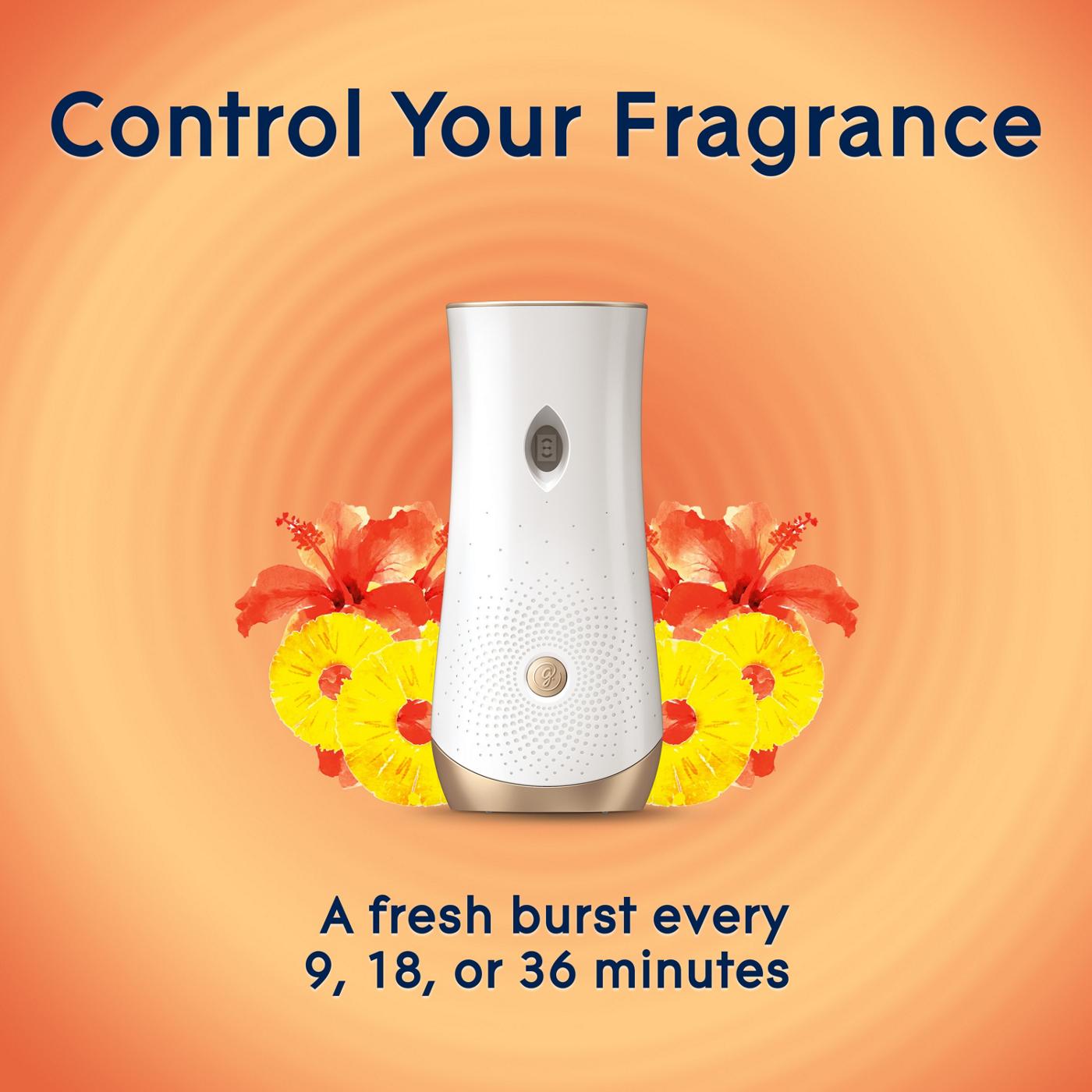 • Enjoy a fresh burst of tropical scent every 9, 18 or 36 min for a timed fragrance release