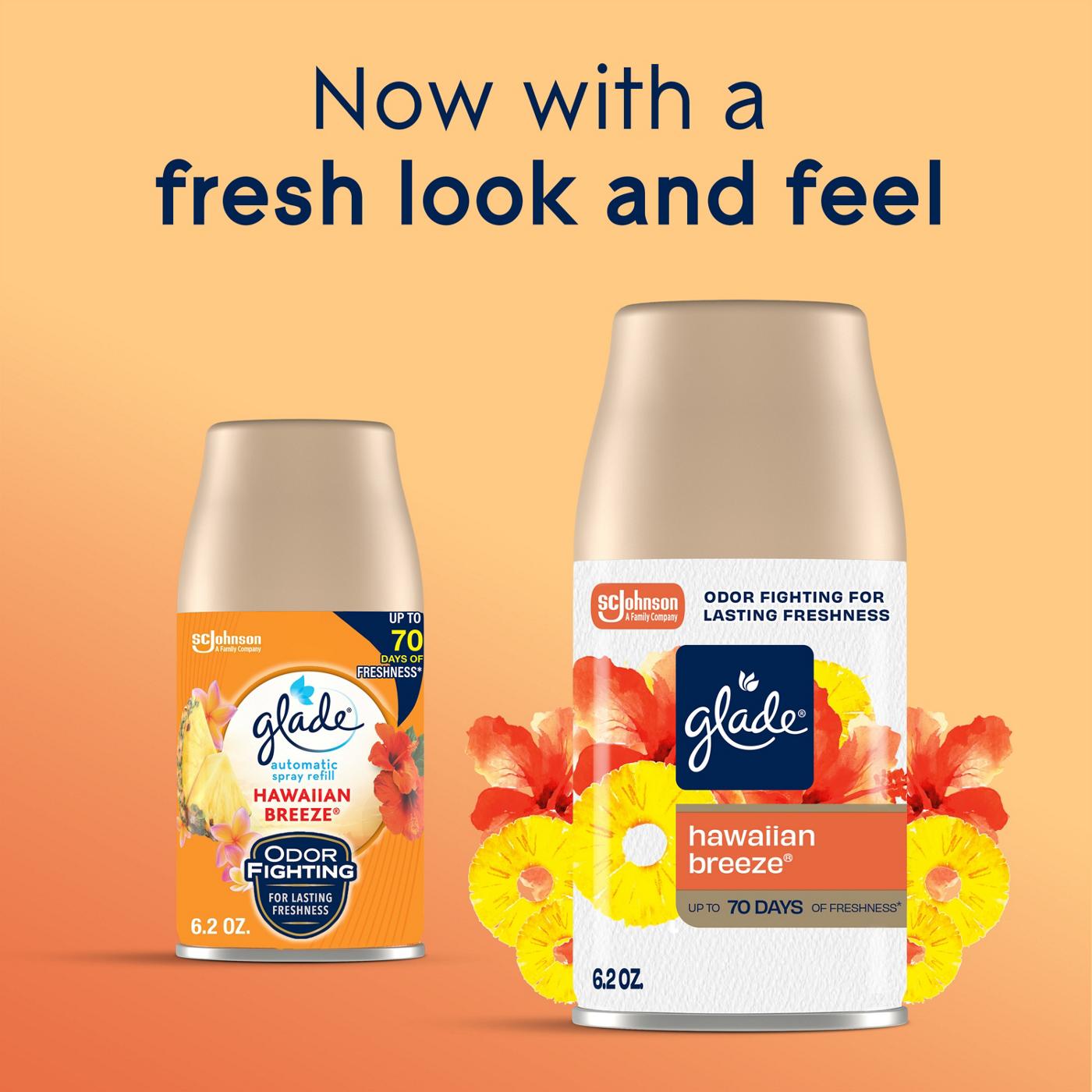 • Say Aloha to relaxation with Glade automatic spray with notes of ripe pineapple, melon, and peach nectar