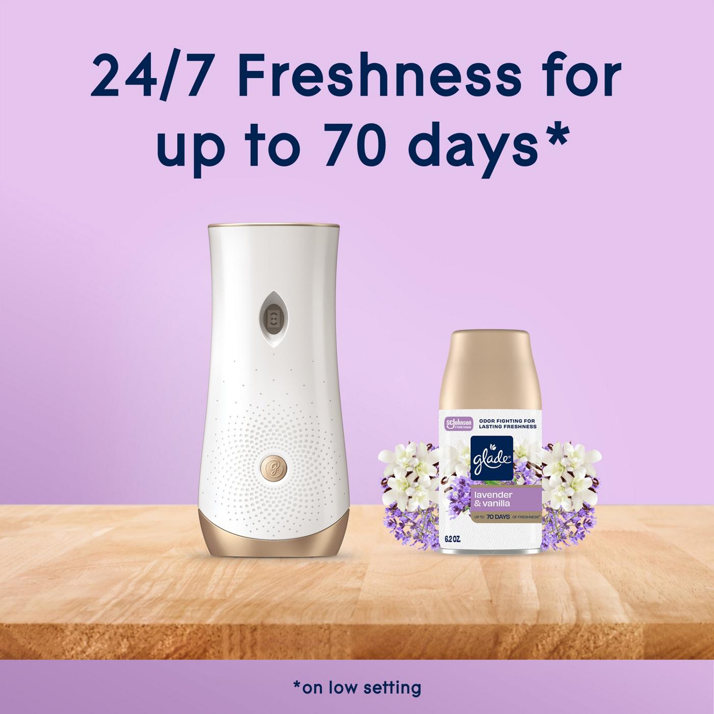 • Relax your mood with Glade automatic spray with notes of lavender, jasmine, and vanilla
