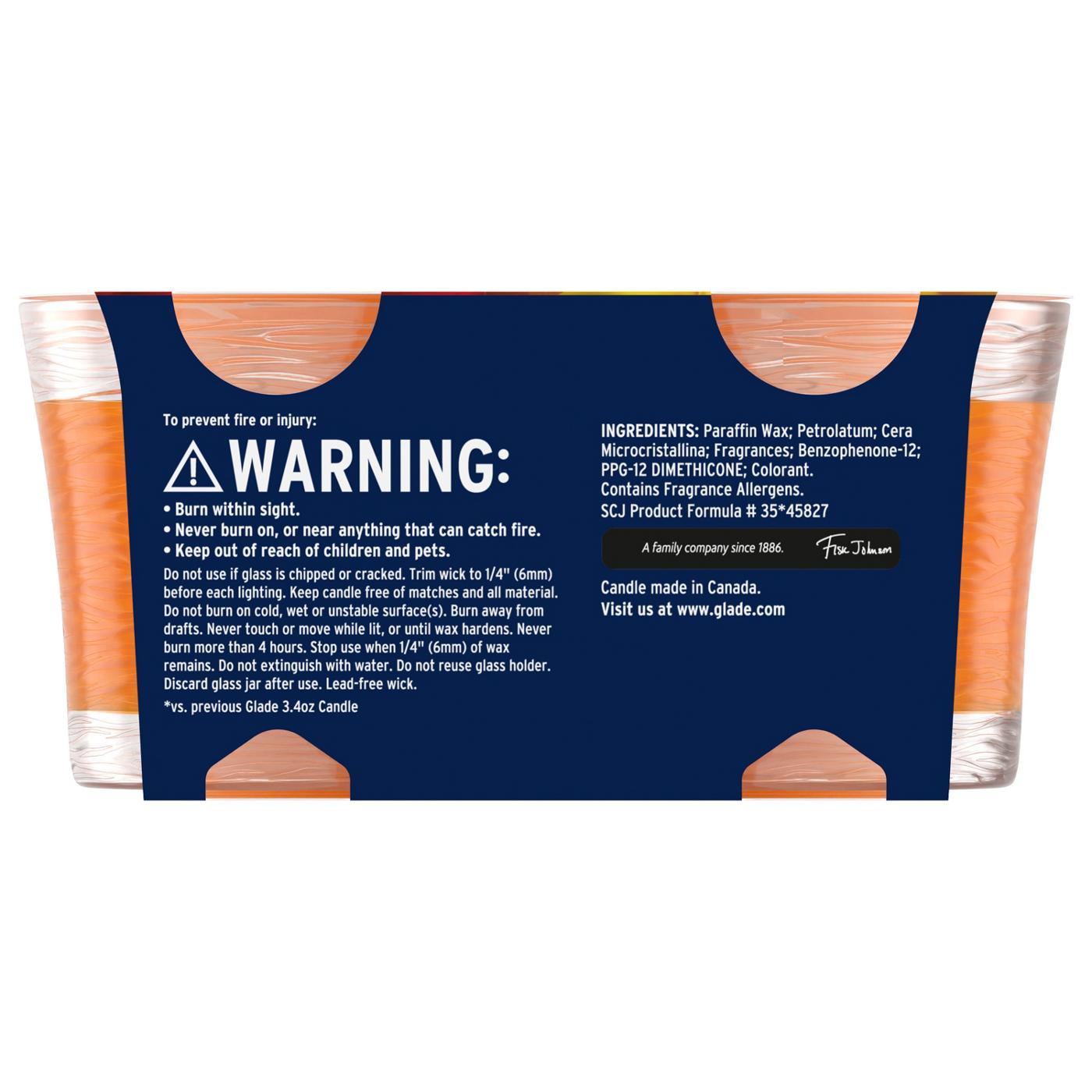 To prevent fire or injury. Warning: Burn within sight. Never burn on, or near anything that can catch fire. Keep out of reach of children and pets. Do not use if glass is chipped or cracked. Trim wick to 1/4 inch (6 mm) before each lighting. Keep candle free of matches and all material. Do not burn on cold, wet, or unstable surface(s). Burn away from drafts. Never touch or move while lit, or until wax hardens. Never burn more than 4 hours. Stop use when 1/4 inch (6 mm) of wax remains. Do not extinguish with water. Do not reuse. Discard extinguish with water. Do not reuse. Discard glass jar after use. Lead-free wick.