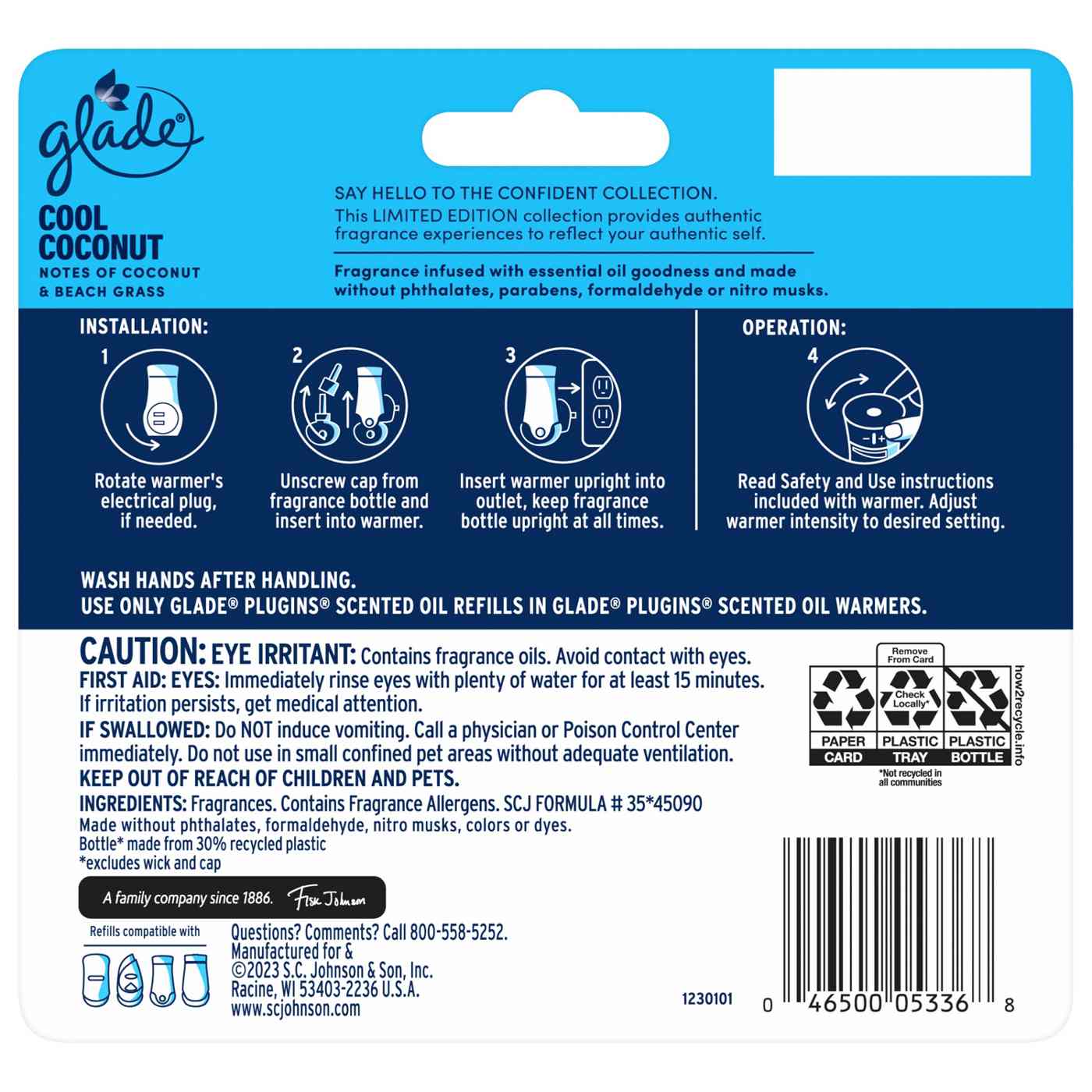 • Glade PlugIns with fragrance oils infused with coconut and beach grass