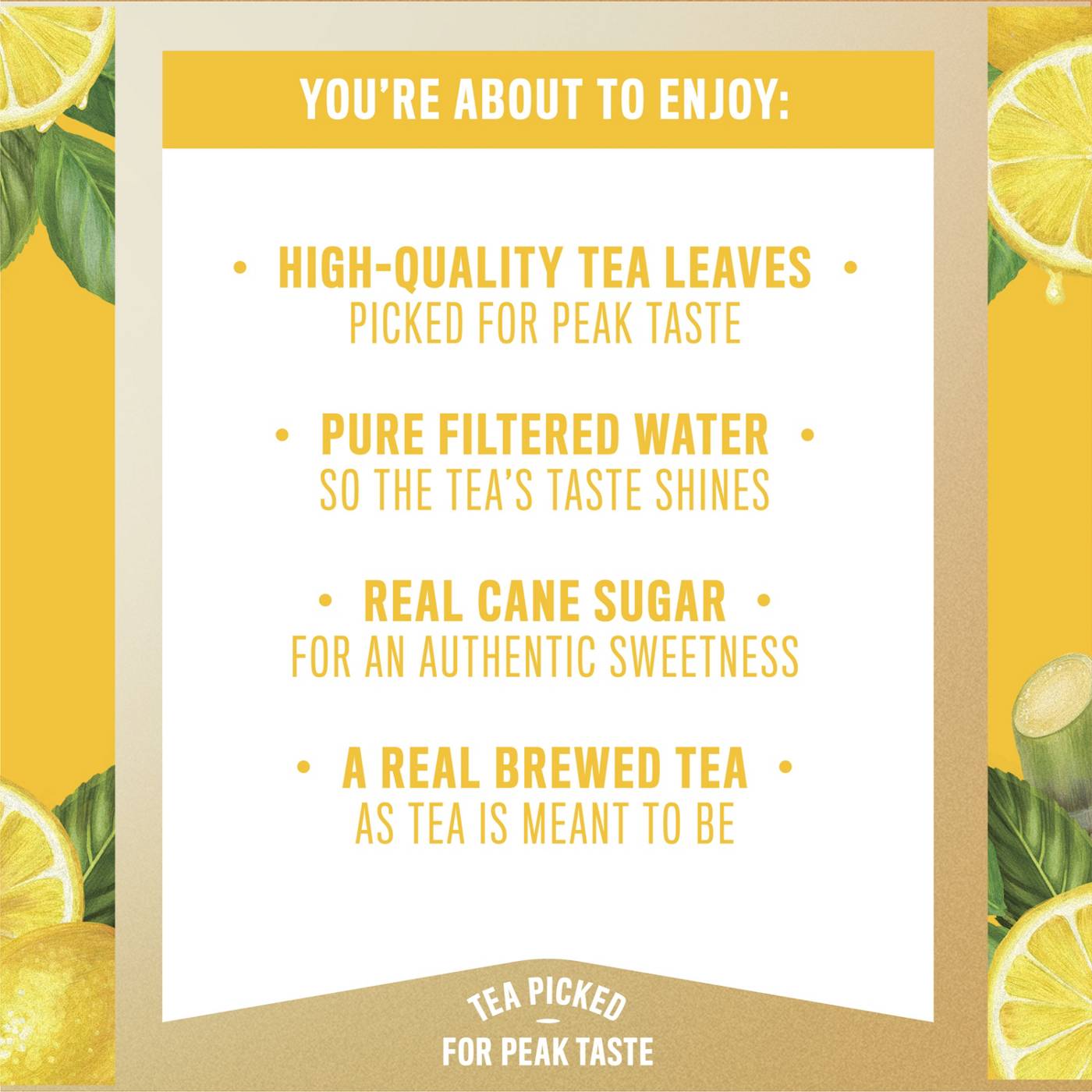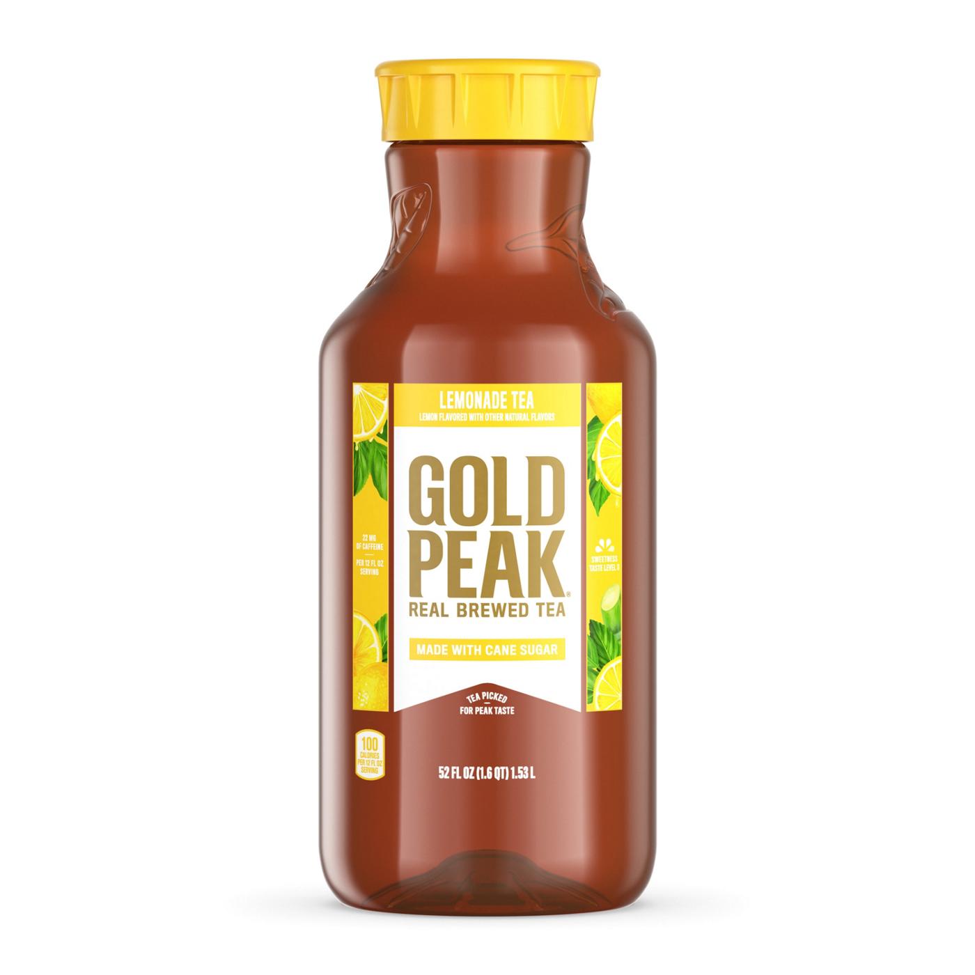 Gold Peak is real brewed tea made from tea leaves picked for peak taste - enjoy Gold Peak Lemonade Tea bursting with refreshingly natural flavors. Gold Peak Lemonade Tea now has 25% less calories and sugar than our regular flavored teas. Perfect for the whole family, these convenient bottles let you take real brewed tea wherever you go.Whether it’s a picnic in the park, watching the game, or a backyard barbeque, get that delicious fresh brewed flavor with every sip of Gold Peak Lemonade Tea. Gold Peak uses cane sugar and pure filtered water for a difference you can taste.Gold Peak has a variety of real brewed flavors that pair marvelously with any occasion, from unplanned get-togethers, to holiday traditions. And the fresh flavor makes any meal feel like home cooking, whether it’s lunch on-the-go or family takeout night, Gold Peak’s real taste will match those real moments.There’s a variety of Gold Peak Teas to choose from, whether you like zero-sugar teas, sweetened real brewed teas or unsweetened real brewed tea options. We have a collection of classic flavors like Gold Peak Lemon Tea, Gold Peak Green Tea and Gold Peak Lemonade Tea and even offer refreshing flavors that are available nationally, like California Raspberry Tea and Georgia Peach Tea.Real Brewed. Real Tea. Real Good.