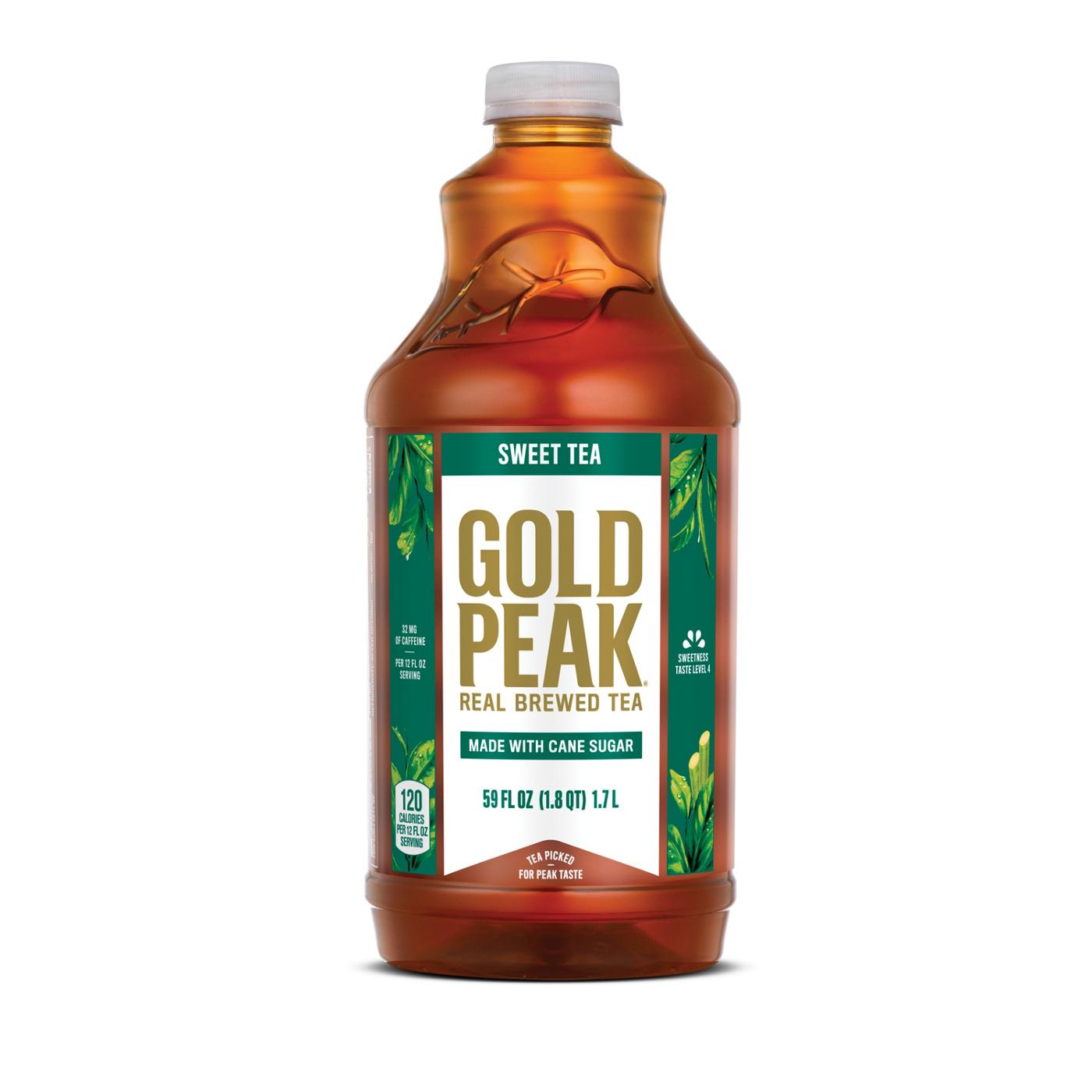 Gold Peak is real brewed tea made from tea leaves picked for peak taste - enjoy Gold Peak Sweet Tea made with real cane sugar. Perfect for the whole family, these convenient bottles let you take real brewed tea wherever you go.Whether it’s a picnic in the park, watching the game, or a backyard barbeque, get that delicious fresh brewed flavor with every sip of Gold Peak Sweet Tea. Gold Peak uses cane sugar and pure filtered water for a difference you can taste.Gold Peak has a variety of real brewed flavors that pair marvelously with any occasion, from unplanned get-togethers to holiday traditions. And the fresh flavor makes any meal feel like home cooking, whether it’s lunch on-the-go or family takeout night, Gold Peak’s real taste will match those real moments.There’s a variety of Gold Peak Teas to choose from, whether you like zero-sugar teas, sweetened real brewed teas or unsweetened real brewed tea options. We have a collection of classic flavors like Gold Peak Lemon Tea, Gold Peak Green Tea and Gold Peak Lemonade Tea and even offer refreshing flavors that are available nationally, like California Raspberry Tea and Georgia Peach Tea.Real Brewed. Real Tea. Real Good.