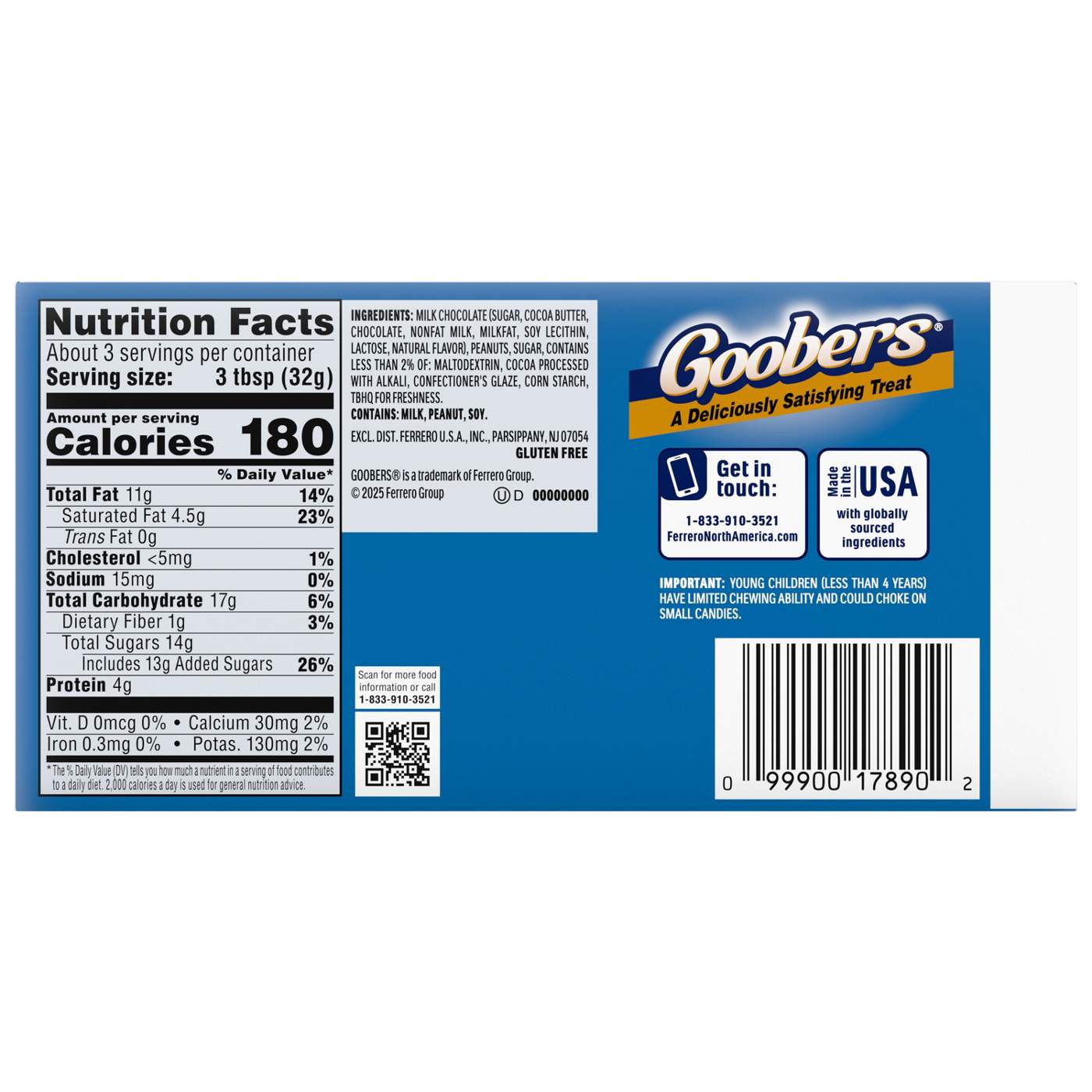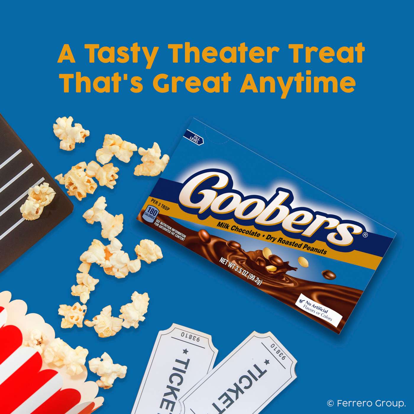 Enjoy the simple joy of chocolate covered peanuts with the perfectly classic, perfectly delicious taste of Goobers. This individual box of classic movie theater candy combines the two great tastes of milk chocolate and freshly roasted peanuts into one treat that can't be beat. Crunchy and delicious, Goobers are gluten-free and have protein, making for a satisfying snack. Perfect for movie nights at home, Goobers bring the fun of movie theater candy right to your couch. Whether you’re stocking Halloween candy bowls, filling stocking stuffers or looking for a Valentine’s Day gifts or Easter surprise, Goobers chocolate covered peanuts bring timeless sweetness to every occasion. Grab a box or two today and add a delicious chocolate treat that’s perfect for movie time or anytime.