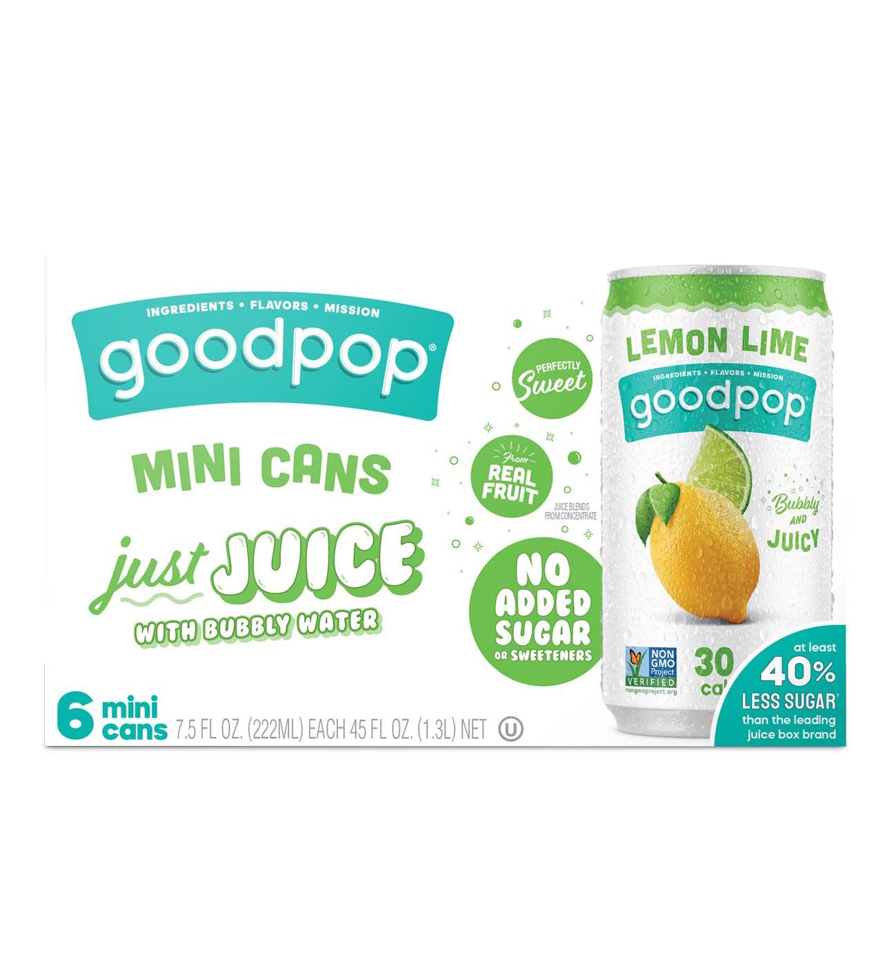 GoodPop Just Juice 6 pk Mini Cans with Bubbly Water - Lemon Lime