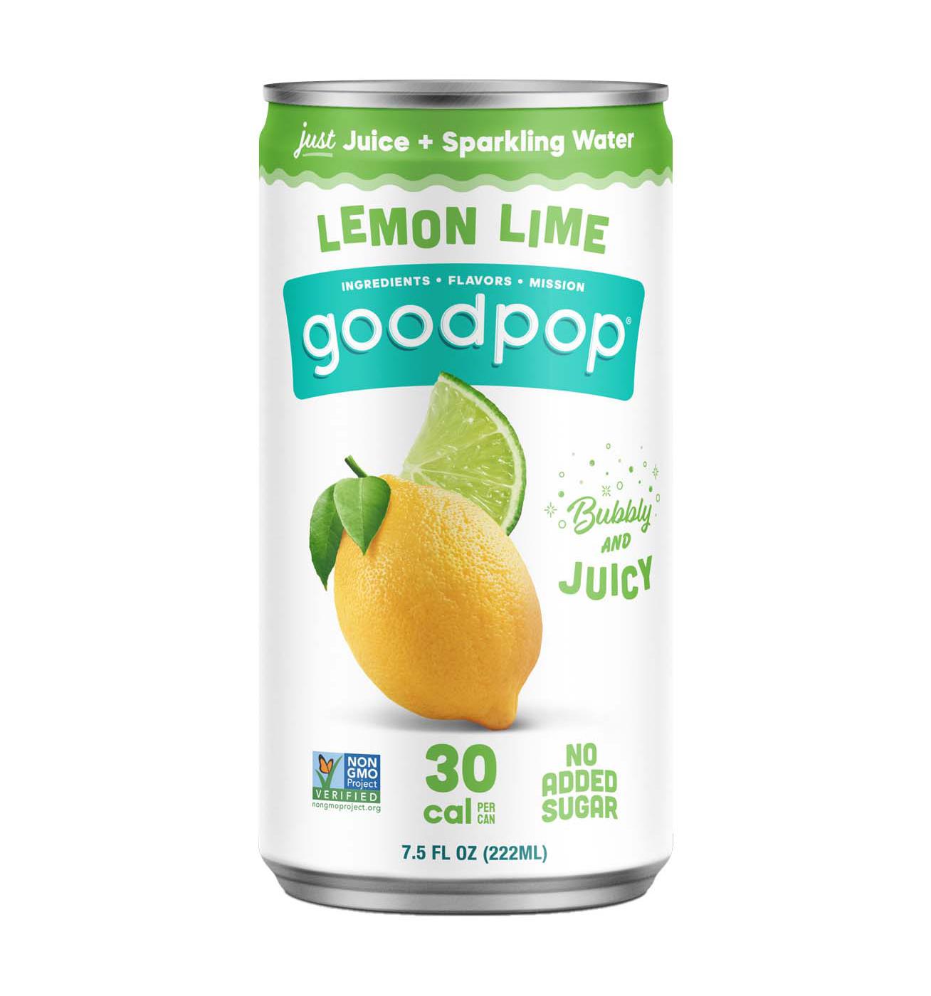 Say hello to GoodPop Lemon Lime Mini Cans! Real, refreshing fruit juices get blended with sparkling water for a fun and bubbly twist the whole family will enjoy. With no added sugars or artificial flavors, these juice pops are a treat parents can feel GOOD about giving their kids. Its handy size is perfect for on-the-go trips, lunchboxes and even as cocktail mixers for the adults! Each 7.5 ounce can is perfectly sized for your kids, cutting down on waste and making them an ideal addition to their lunchboxes. At GoodPop, we're here for those who Crave a World of Good™. The refreshing fruit juice pops you're about to enjoy create everyday social good via responsible ingredient sourcing and our Pledge Good Foundation. Proudly a Certified B Corp.