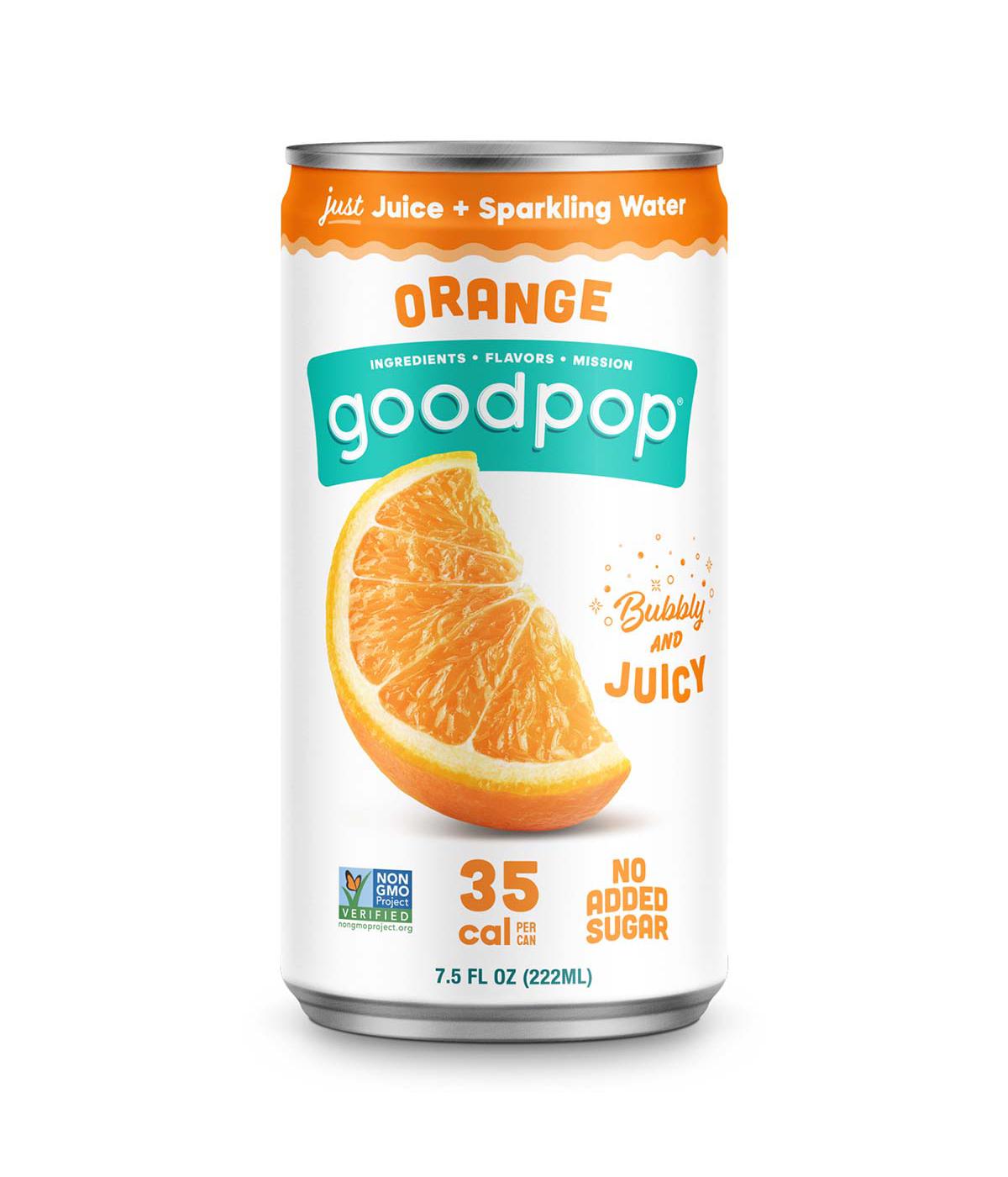 Say hello to GoodPop Orange Mini Cans! Real, refreshing orange juice get blended with sparkling water for a fun and bubbly twist the whole family will enjoy. With no added sugars or artificial flavors, these juice pops are a treat parents can feel GOOD about giving their kids. Its handy size is perfect for on-the-go trips, lunchboxes and even as cocktail mixers for the adults! Each 7.5 ounce can is perfectly sized for your kids, cutting down on waste and making them an ideal addition to their lunchboxes. At GoodPop, we're here for those who Crave a World of Good™. The refreshing fruit juice pops you're about to enjoy create everyday social good via responsible ingredient sourcing and our Pledge Good Foundation. Proudly a Certified B Corp.