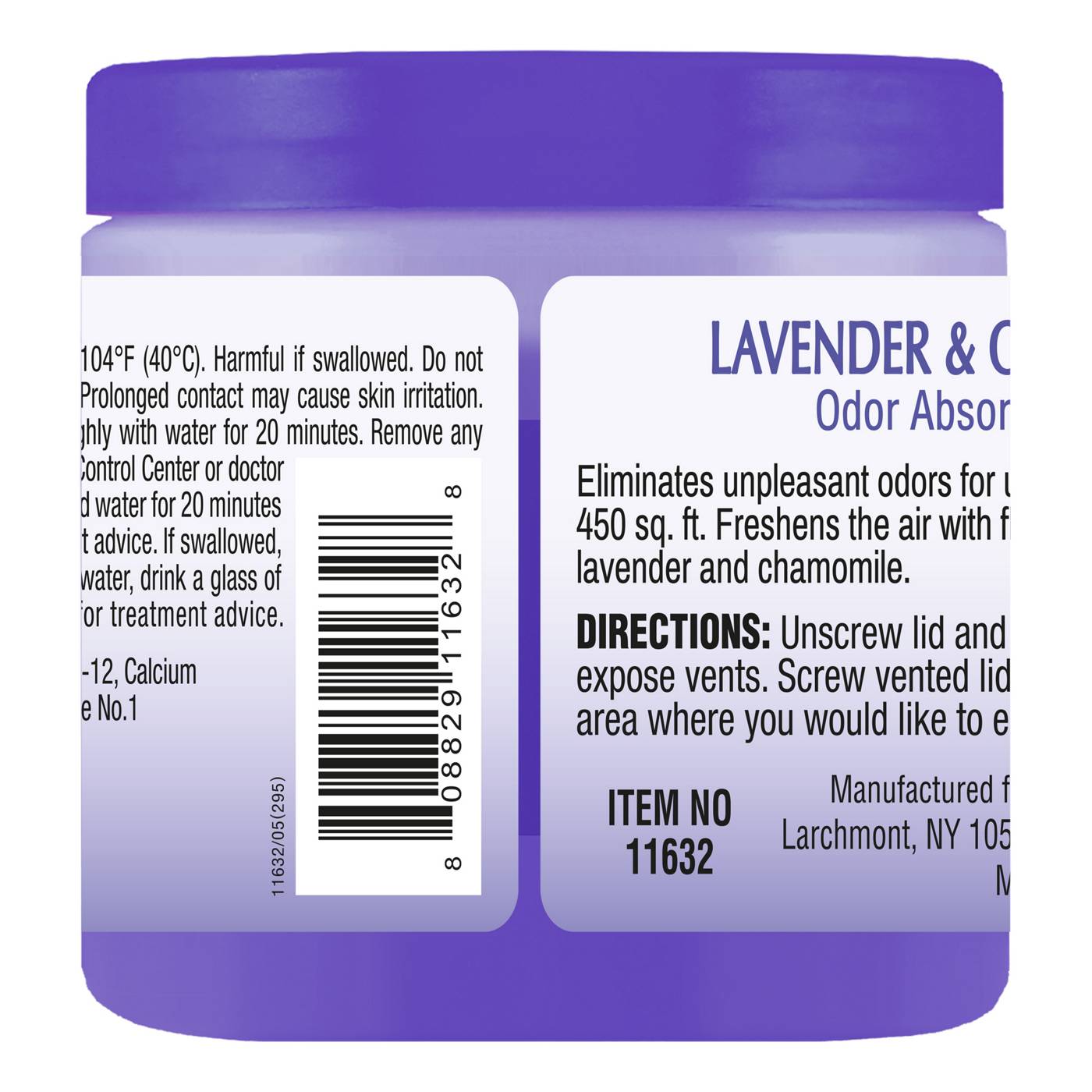 Lavender & Chamomile odor absorbing gel. Eliminates unpleasant odors for up to 45 days in a room up to 450 sq. ft. Freshens the air with floral fragrances of both lavender and chamomile.