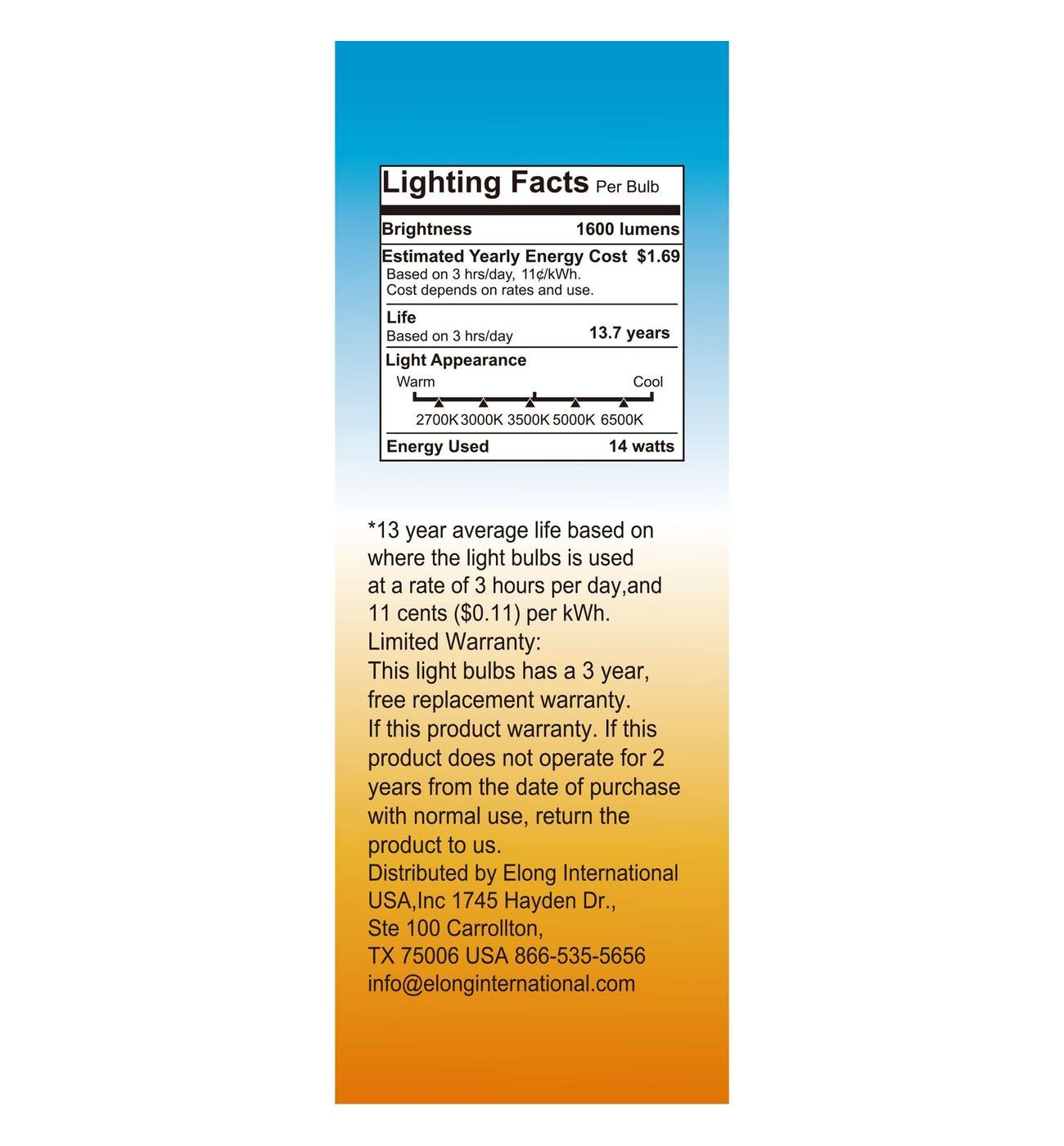 One bulb that allows you to choose any of 5 different light colors. Choose from Soft White (2700k), Warm White (3000k), Neutral White (3500k). Daylight (5000k) or Cool Daylight (6500k).
